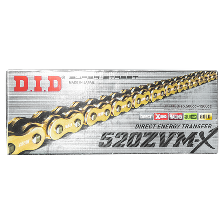 • Chaîne D.I.D 520ZVM-X X-Ring 520 G&G ouverte avec maillon à rivet – 100 à 132 maillons