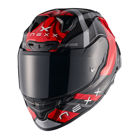 • Casque Nexx X.R3R Swirl Carbone Rouge Argent 01XR323489023
