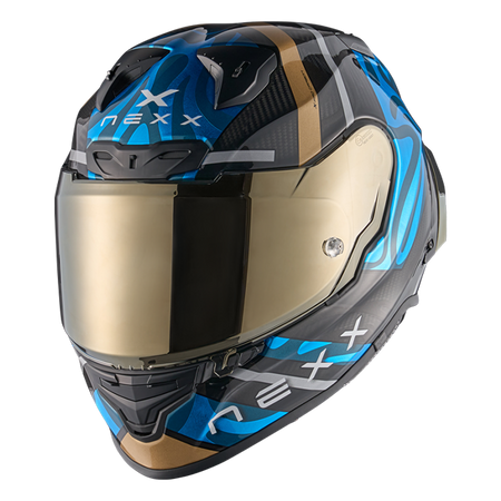 Casque Nexx X.R3R Swirl Carbone Bleu Ciel Or 01XR323489780