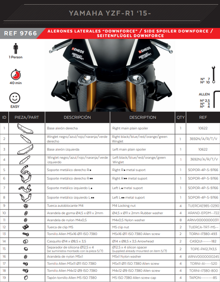 Spoiler Puig Winglets Downforce Yamaha YZF-R1/M RN32 RN49 (15-19) 9766