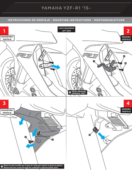 Bobbins/Blozen prise de stand LighTech M6 Yamaha YZF-R1/M RN32, RN49, RN65 (15-25) SCV003