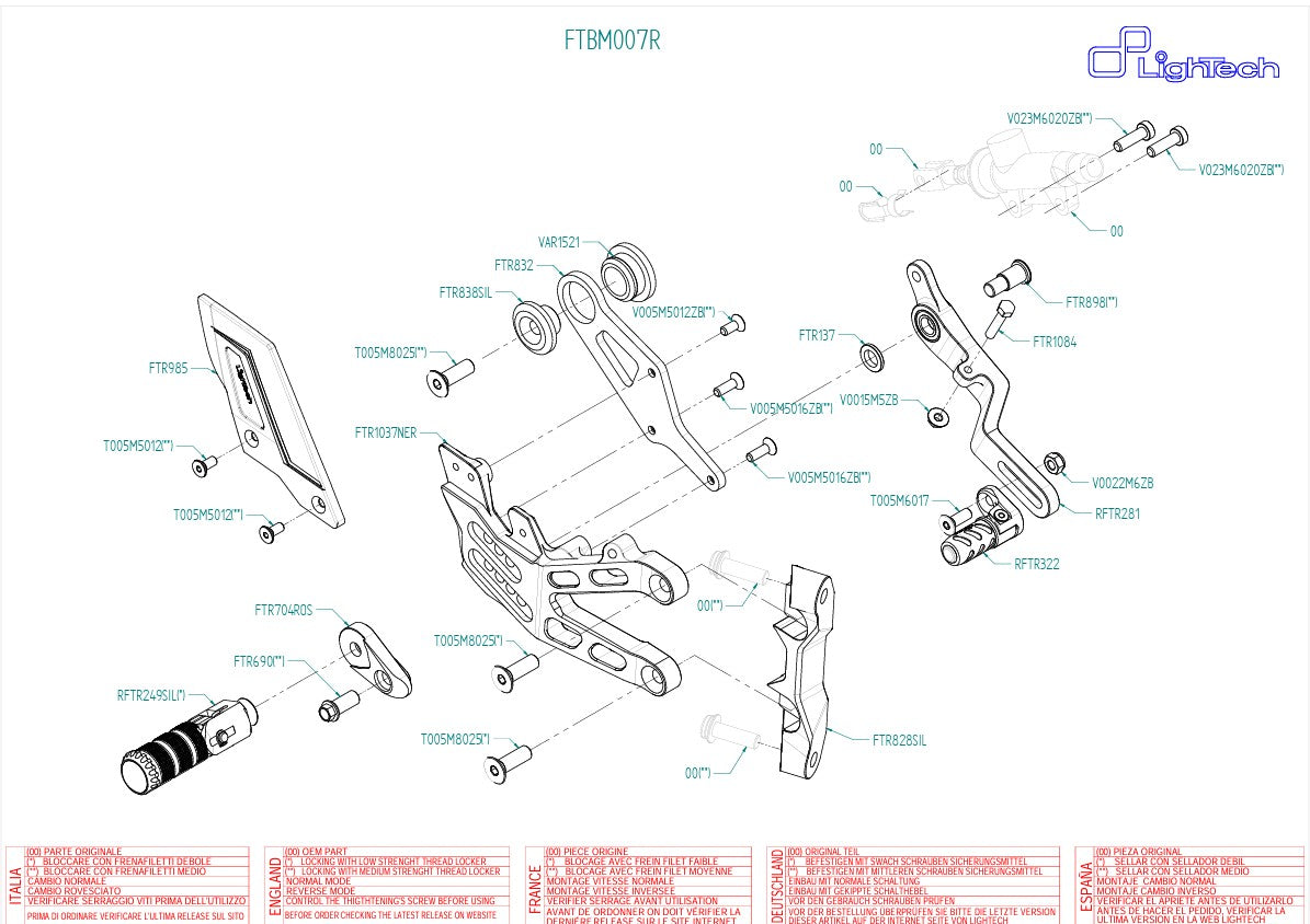 Die LighTech Fußrastenanlage R (FTRBM007R) wurde für die BMW S1000RR K67 (Modelljahre 2019–2025) entwickelt und erfüllt höchste Ansprüche in Sachen Materialqualität, Fahrpräzision und Racing-Funktionalität.