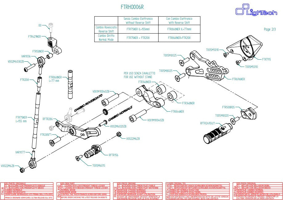 Die LighTech R-Fußrastenanlage FTRHO006R für die Honda CBR 1000 RR (2008–2019) vereint hochwertige Fertigung, vielseitige Verstellbarkeit und sportliches Design – sowohl für die Straße als auch für den Einsatz auf der Rennstrecke.