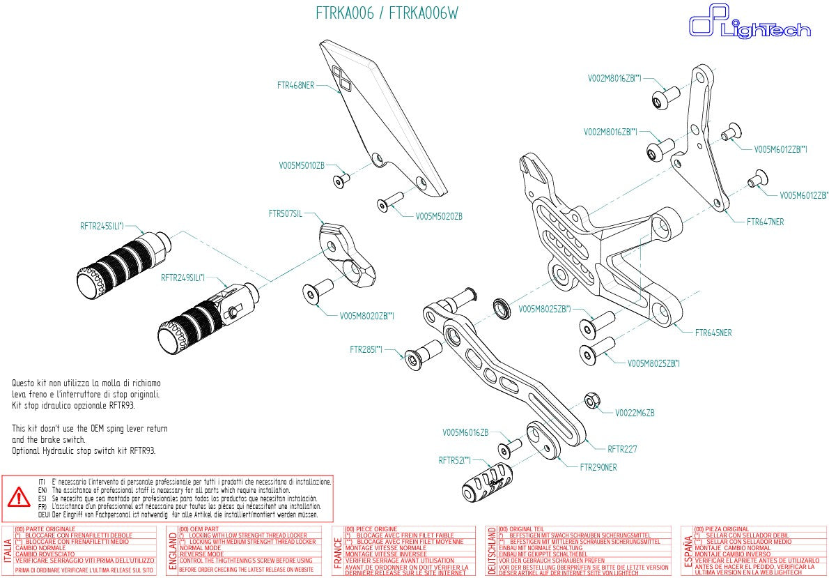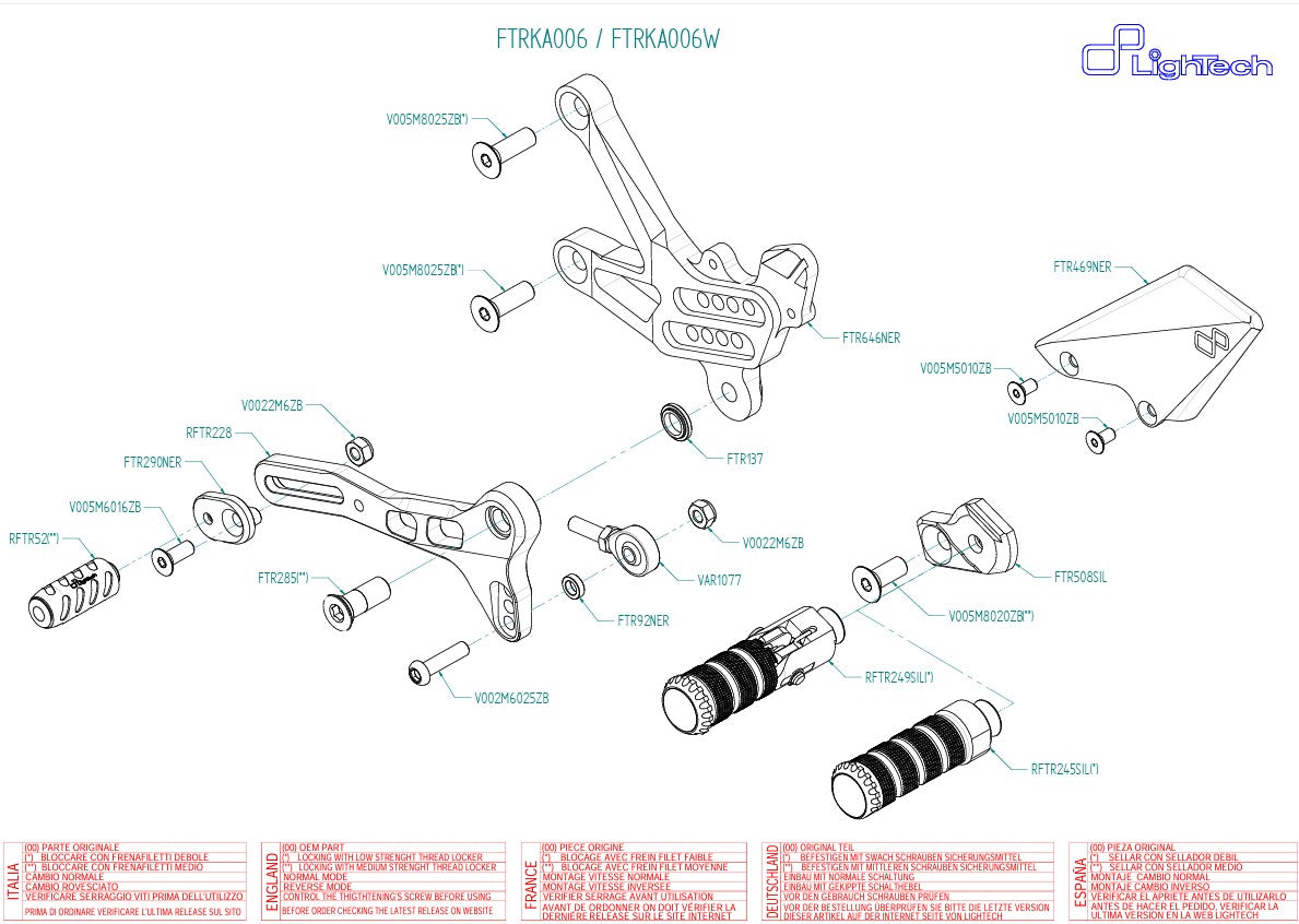 Fußrastenanlage LighTech Kawasaki ZX-10 R/RR (16-20) FTRKA006/W