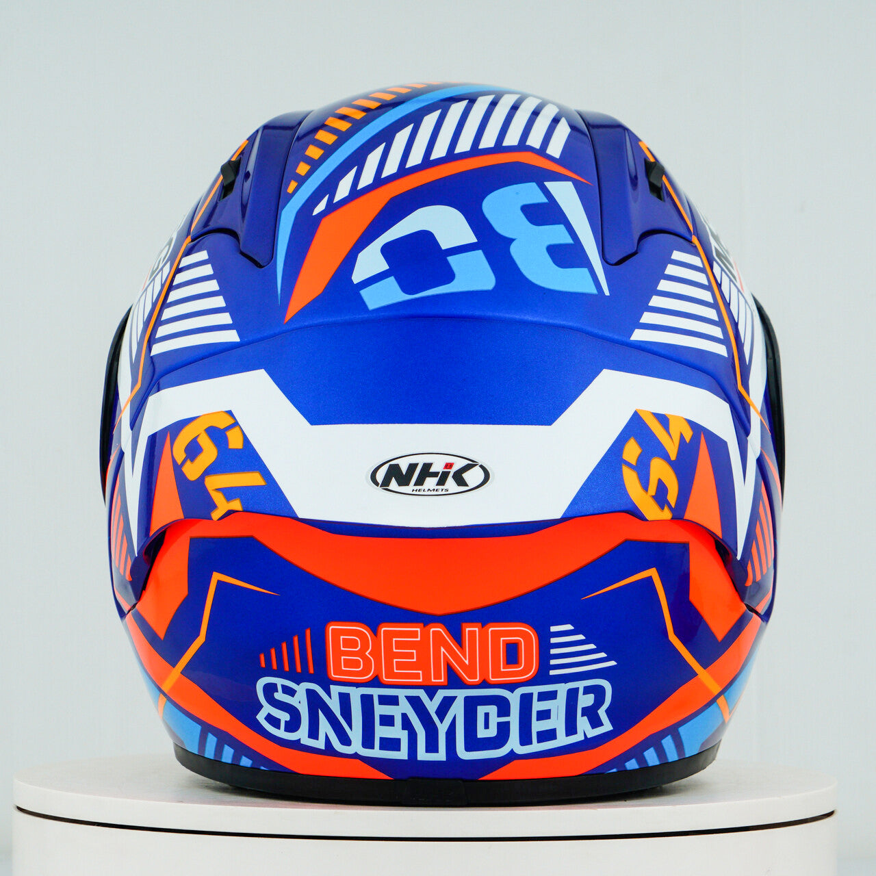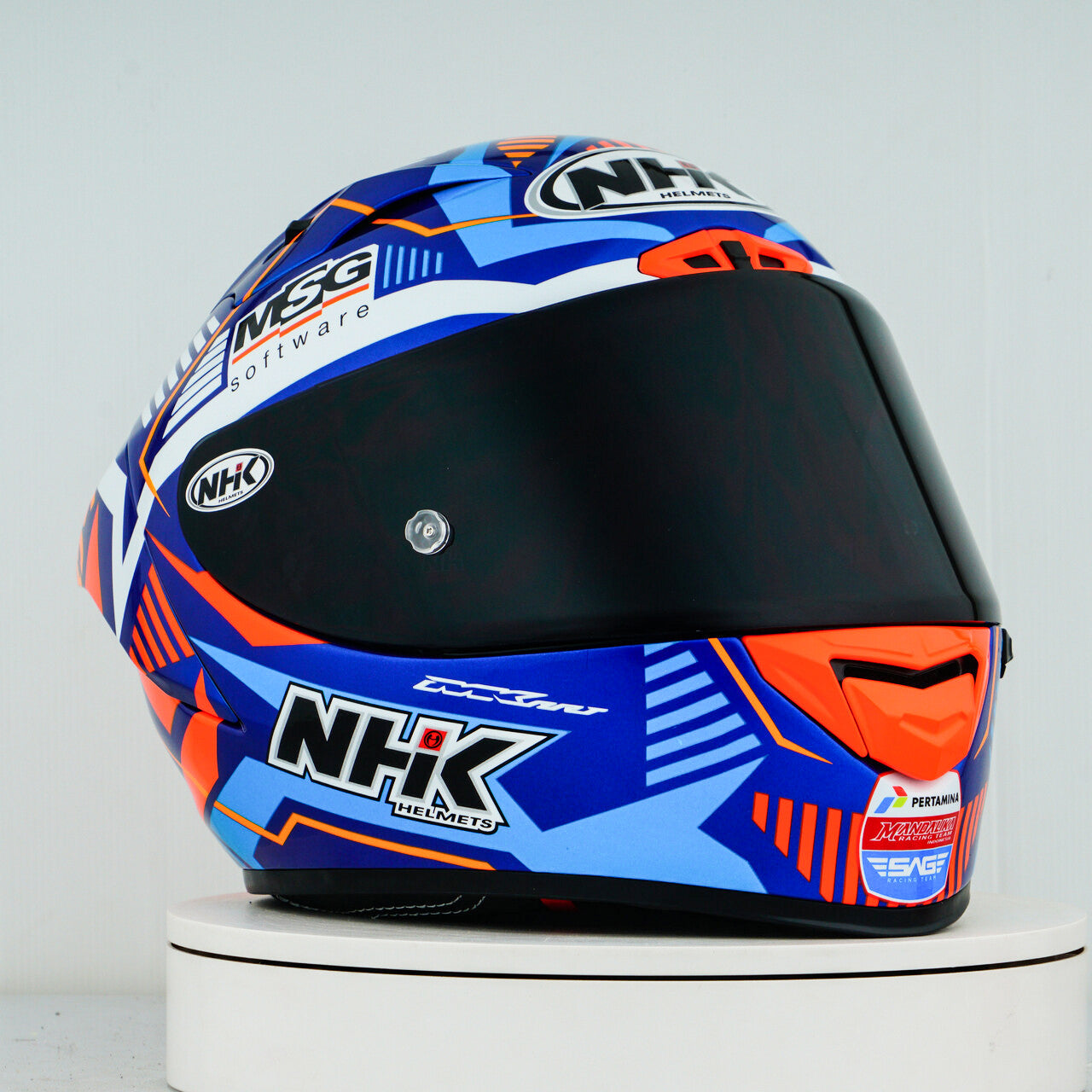 Erleben Sie den ultimativen Motorradhelm mit dem NHK GP-R Tech Race, der FIM-zugelassen ist und eine (AFRC) Advanced Fiberglass Reinforced Composite-Verbundschale in fünf Größen bietet, die perfekte Passform und Schutz garantiert. Der AFRC ist ein Verbundwerkstoff, der aus einer Matrix und Verstärkungsfasern besteht. Die Matrix ist in der Regel ein Polymer (z. B. Epoxidharz), während die Verstärkungsfasern aus Glasfasern bestehen. Mit neun Innenschalengrößen und zwölf Helmgrößen finden Sie immer die ideale Passform. Unser 4D-Air Lüftungssystem sorgt für eine optimale Belüftung und ein angenehmes Tragegefühl, während das Premium und komfortable Innenfutter höchsten Komfort bietet. Der Helm wurde aerodynamisch in den Klassen der MotoGP getestet und verfügt über ein flaches Visier mit "Wide Angle View" für ein erweitertes Sichtfeld. Das Pin-Lock & Tear-off-ready Visier gewährleistet klare Sicht unter allen Bedingungen. Dank des 100% vollmechanischen Visiersystems ist der Wechsel des Visiers einfach und schnell. Das herausnehmbare und waschbare Innenfutter sorgt für einfache Pflege und Hygiene. Der Helm ist zudem vorbereitet für einen "Camel-Bag" und kann problemlos mit Brille getragen werden. Das Doppel-D-Ring-Rückhaltesystem und die Wange zur Notabnahme bieten zusätzliche Sicherheit und Stabilität. Der Helm wurde im Windkanal getestet, um beste Leistung bei hoher Geschwindigkeit zu gewährleisten.