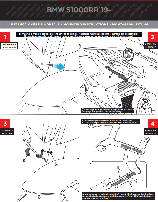Experience them aerodynamic racing technology The professional with the Puig Downforce Sport Spoilers, Model 3636, specially developed for the BMW S1000RR K67 (2019-2022). These advanced winglets are based on the tests and knowledge of the Kawasaki Racing Teams in the Worldsbk and were developed to performance, stability and Security to maximize on the racetrack.