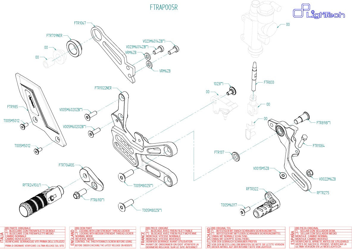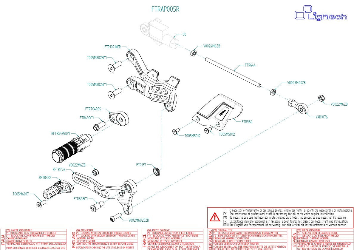 The Lightech footrest system R for the Aprilia RSV4 / RF / RR / 1100 Factory (built in 2017–2025) is the perfect choice for demanding drivers in road and racing.