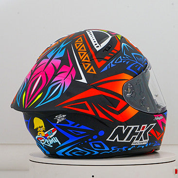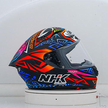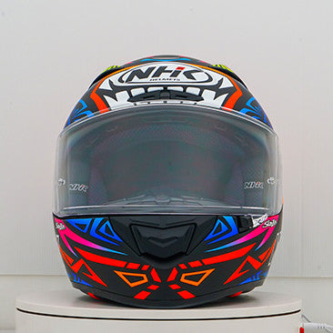 Experience the ultimate motorcycle helmet with the NHK GP-R Tech Race, which is FIM and an (AFRC) Advanced Fiberglass Reinforced Composite composite shell in five sizes that guarantees perfect fit and protection. The AFRC is a composite material that consists of a matrix and reinforcement fibers. The matrix is usually a polymer (e.g. epoxy resin), while the reinforcement fibers are made of glass fibers. With nine inner shell sizes and twelve helmet sizes, you will always find the ideal fit. Our 4D-air ventilation system ensures optimal ventilation and a comfortable fit, while the premium and comfortable inner lining offers maximum comfort. The helmet was aerodynamically tested in the MotoGP classes and has a flat visor with "Wide Angle View" for an extended field of vision. The PIN-Lock & Tear-Off-Ready Visor ensures clear view from all conditions. Thanks to the 100% full mechanical visor system, changing the visor is easy and quick. The removable and washable inner lining ensures easy care and hygiene. The helmet is also prepared for a "camel bag" and can easily be carried with glasses. The double D ring retention system and the cheek for acceptance offer additional security and stability. The helmet was tested in the wind tunnel to ensure the best performance at high speed.