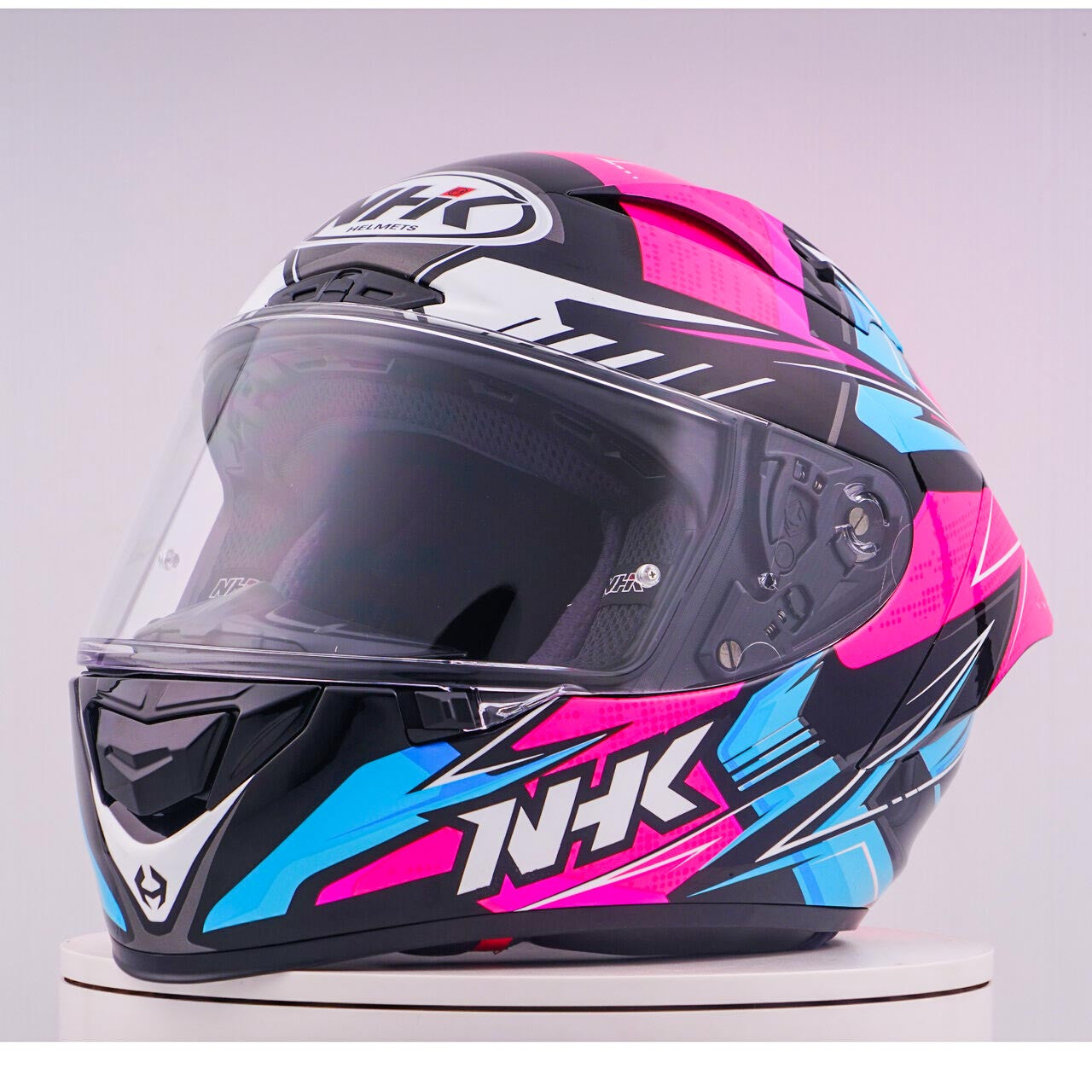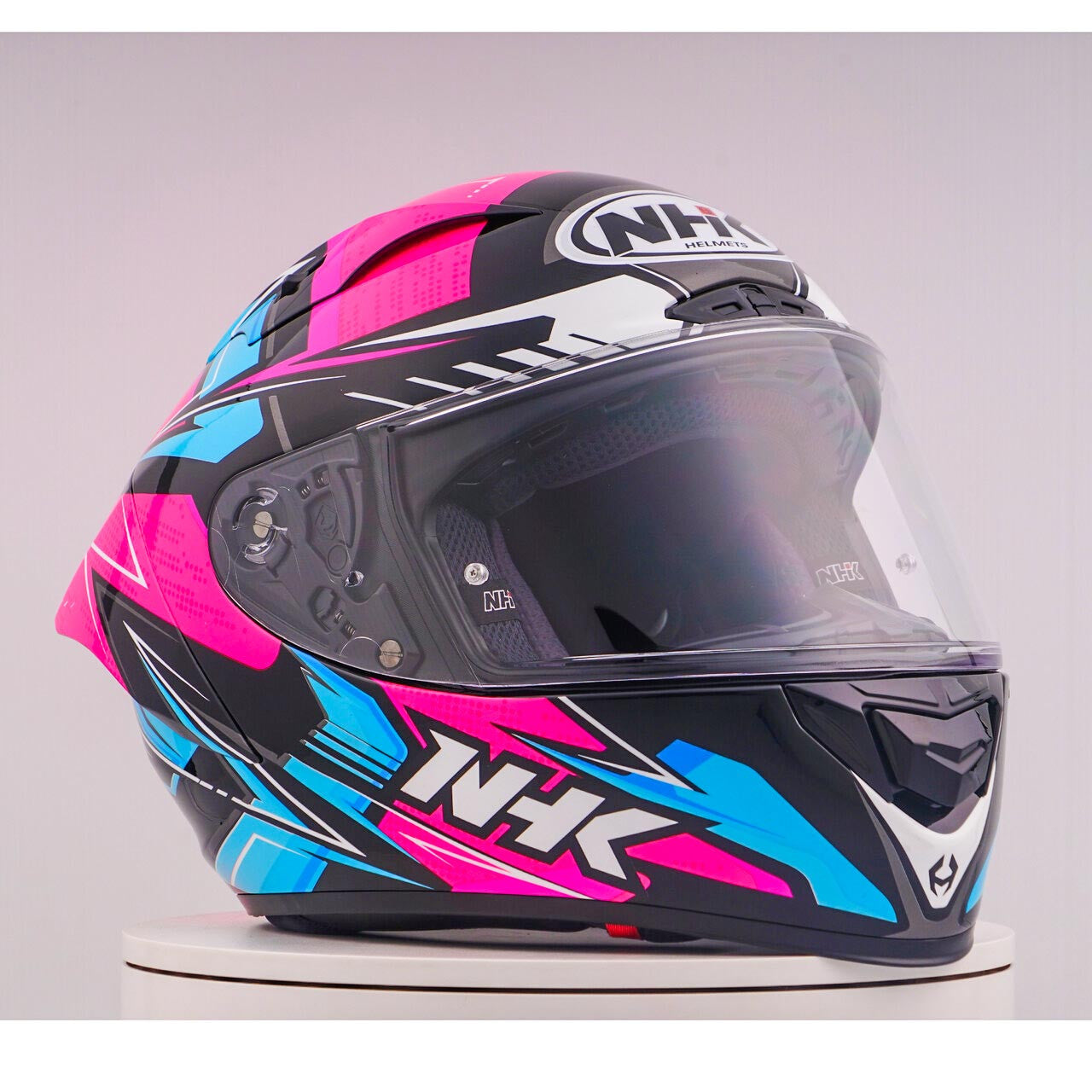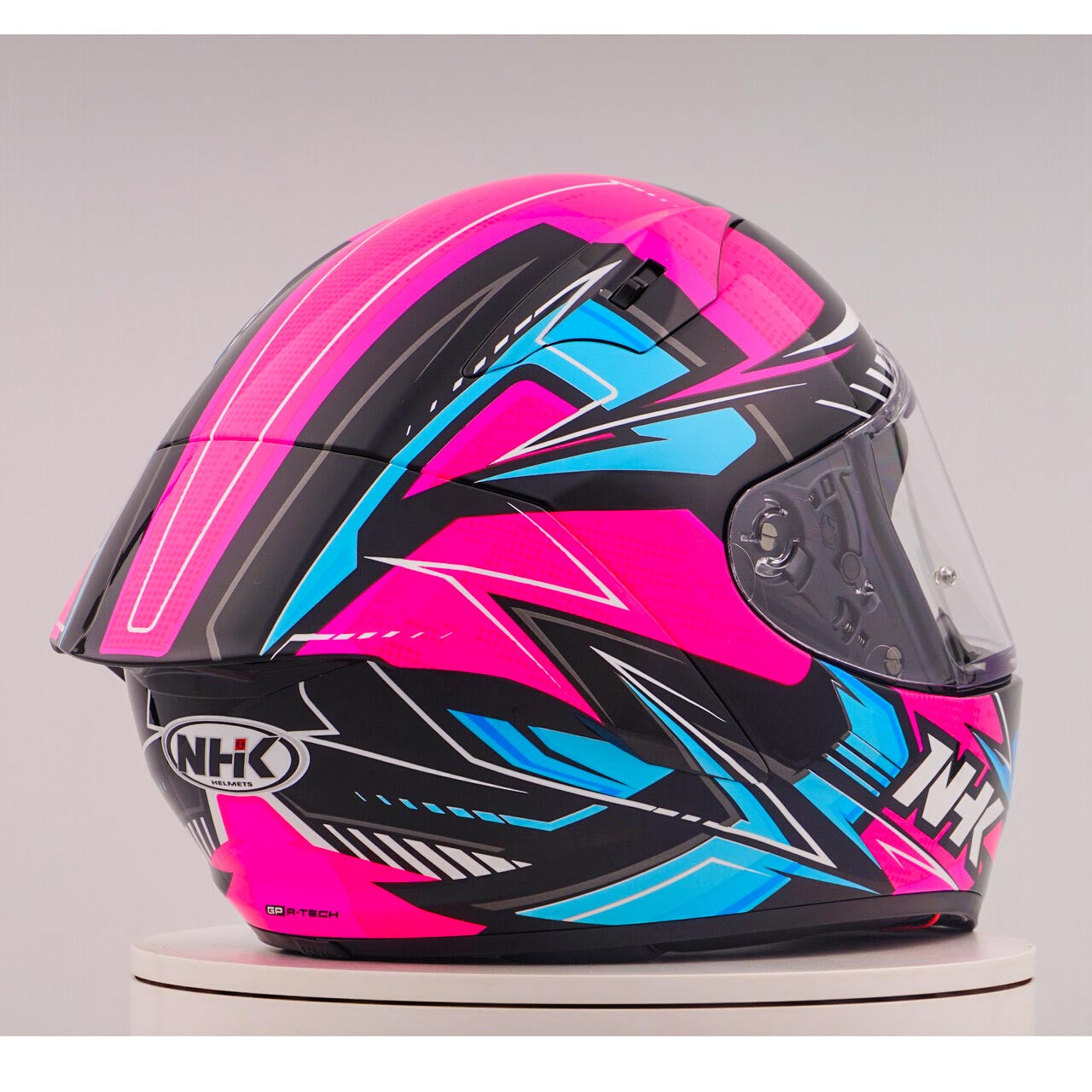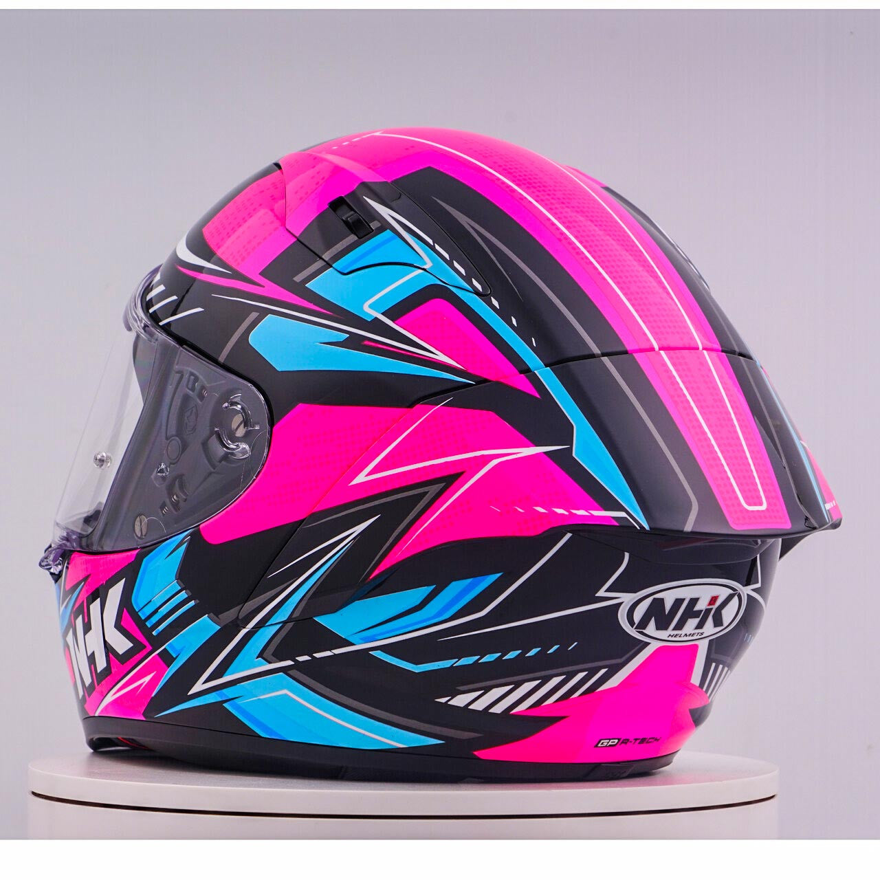 Experience the ultimate motorcycle helmet with the NHK GP-R Tech Race, which is FIM and an (AFRC) Advanced Fiberglass Reinforced Composite composite shell in five sizes that guarantees perfect fit and protection. The AFRC is a composite material that consists of a matrix and reinforcement fibers. The matrix is usually a polymer (e.g. epoxy resin), while the reinforcement fibers are made of glass fibers. With nine inner shell sizes and twelve helmet sizes, you will always find the ideal fit. Our 4D-air ventilation system ensures optimal ventilation and a comfortable fit, while the premium and comfortable inner lining offers maximum comfort. The helmet was aerodynamically tested in the MotoGP classes and has a flat visor with "Wide Angle View" for an extended field of vision. The PIN-Lock & Tear-Off-Ready Visor ensures clear view from all conditions. Thanks to the 100% full mechanical visor system, changing the visor is easy and quick. The removable and washable inner lining ensures easy care and hygiene. The helmet is also prepared for a "camel bag" and can easily be carried with glasses. The double D ring retention system and the cheek for acceptance offer additional security and stability. The helmet was tested in the wind tunnel to ensure the best performance at high speed.