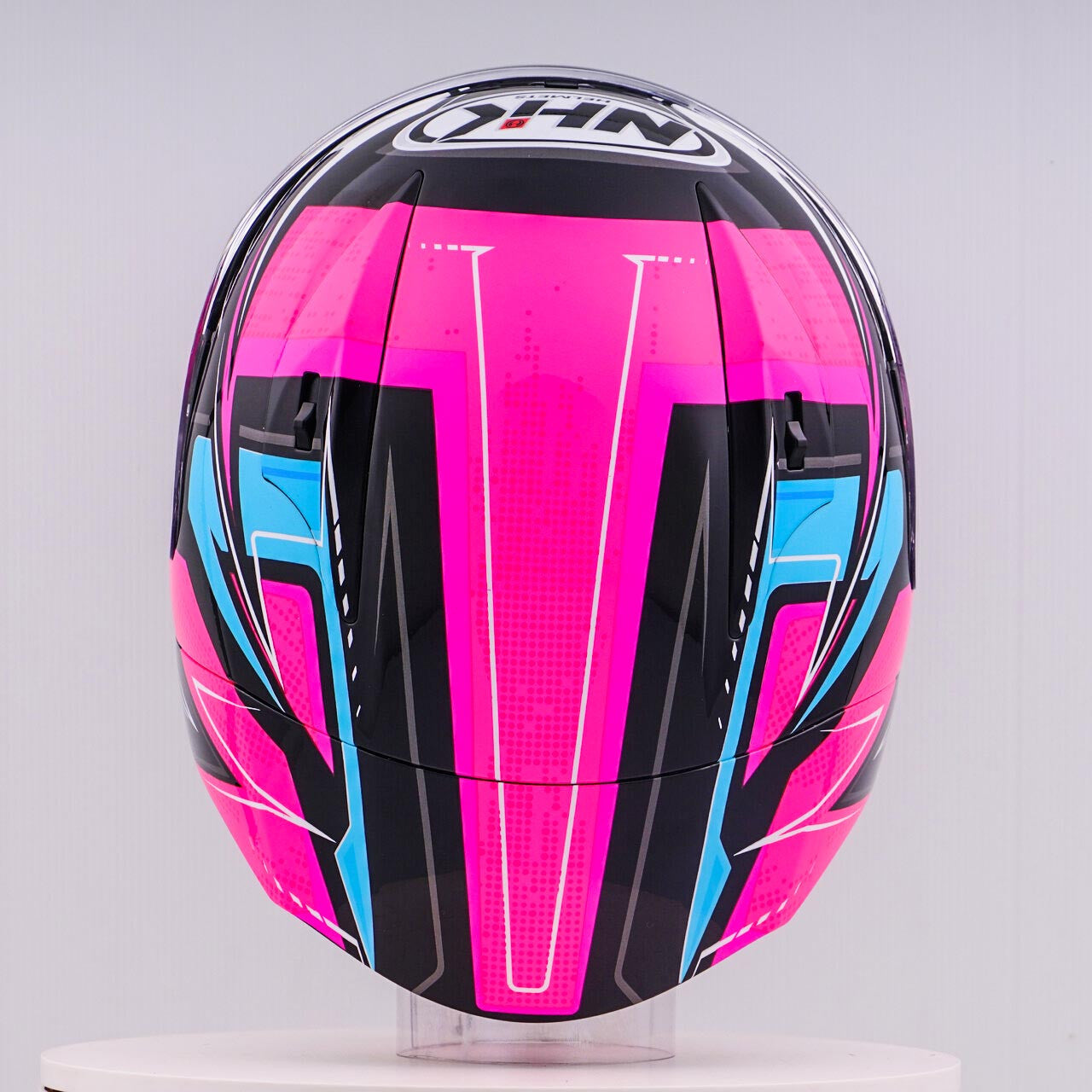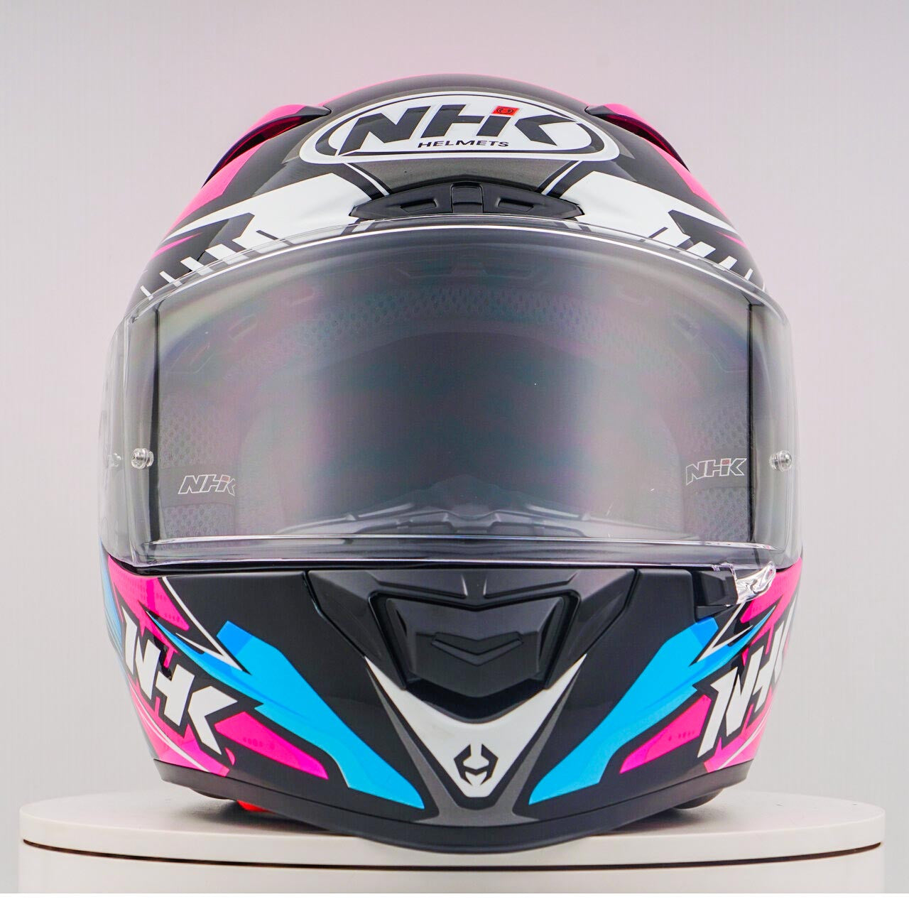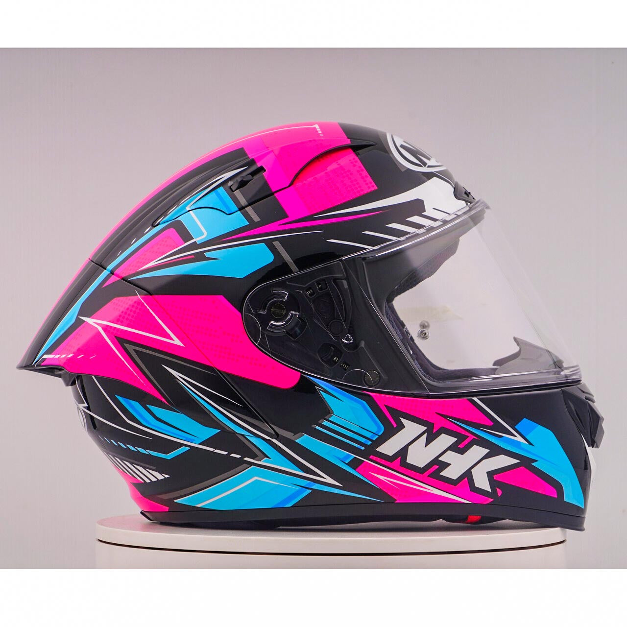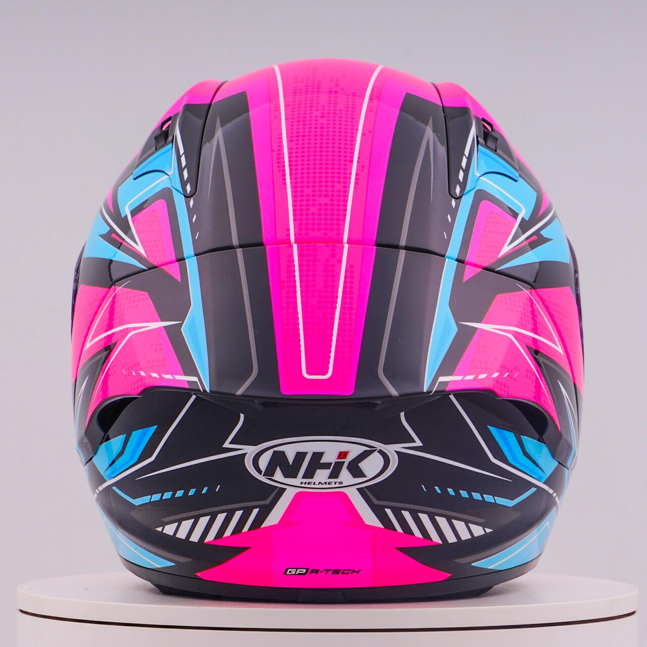Experience the ultimate motorcycle helmet with the NHK GP-R Tech Race, which is FIM and an (AFRC) Advanced Fiberglass Reinforced Composite composite shell in five sizes that guarantees perfect fit and protection. The AFRC is a composite material that consists of a matrix and reinforcement fibers. The matrix is usually a polymer (e.g. epoxy resin), while the reinforcement fibers are made of glass fibers. With nine inner shell sizes and twelve helmet sizes, you will always find the ideal fit. Our 4D-air ventilation system ensures optimal ventilation and a comfortable fit, while the premium and comfortable inner lining offers maximum comfort. The helmet was aerodynamically tested in the MotoGP classes and has a flat visor with "Wide Angle View" for an extended field of vision. The PIN-Lock & Tear-Off-Ready Visor ensures clear view from all conditions. Thanks to the 100% full mechanical visor system, changing the visor is easy and quick. The removable and washable inner lining ensures easy care and hygiene. The helmet is also prepared for a "camel bag" and can easily be carried with glasses. The double D ring retention system and the cheek for acceptance offer additional security and stability. The helmet was tested in the wind tunnel to ensure the best performance at high speed.