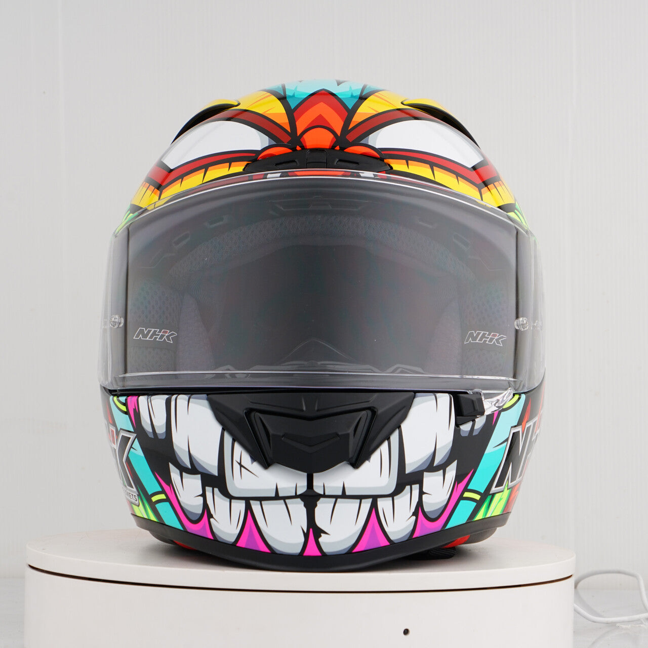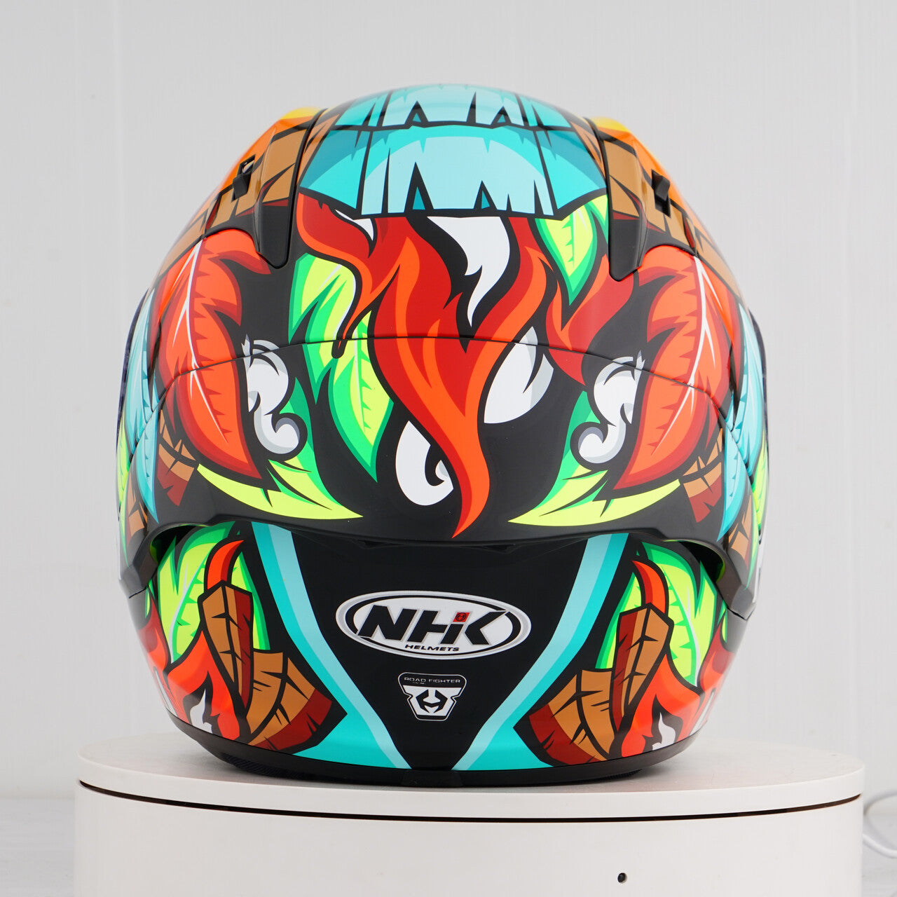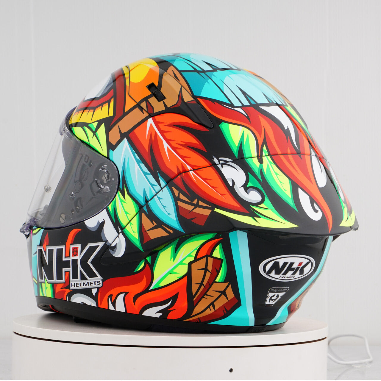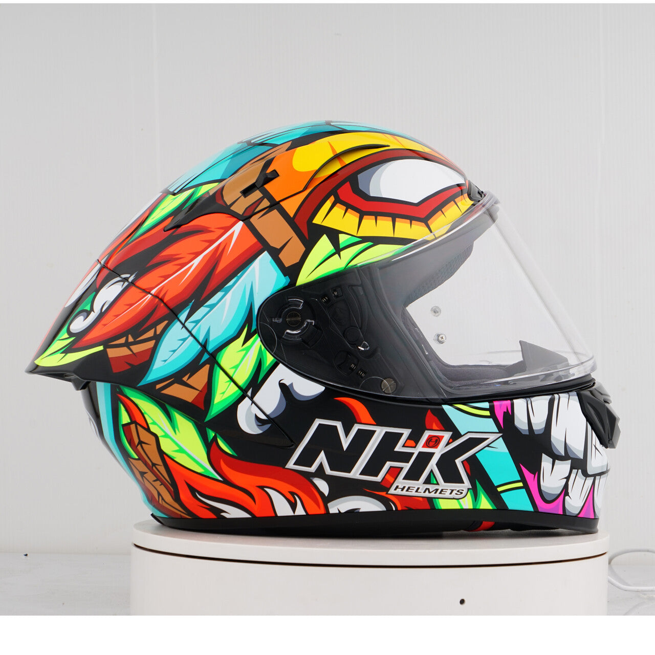 Experience the ultimate motorcycle helmet with the NHK GP-R Tech Race, which is FIM and an (AFRC) Advanced Fiberglass Reinforced Composite composite shell in five sizes that guarantees perfect fit and protection. The AFRC is a composite material that consists of a matrix and reinforcement fibers. The matrix is ​​usually a polymer (e.g. epoxy resin), while the reinforcement fibers are made of glass fibers. With nine inner shell sizes and twelve helmet sizes, you will always find the ideal fit. Our 4D-air ventilation system ensures optimal ventilation and a comfortable fit, while the premium and comfortable inner lining offers maximum comfort. The helmet was aerodynamically tested in the MotoGP classes and has a flat visor with "Wide Angle View" for an extended field of vision. The PIN-Lock & Tear-Off-Ready Visor ensures clear view from all conditions. Thanks to the 100% full mechanical visor system, changing the visor is easy and quick. The removable and washable inner lining ensures easy care and hygiene. The helmet is also prepared for a "camel bag" and can easily be carried with glasses. The double D ring retention system and the cheek for acceptance offer additional security and stability. The helmet was tested in the wind tunnel to ensure the best performance at high speed.