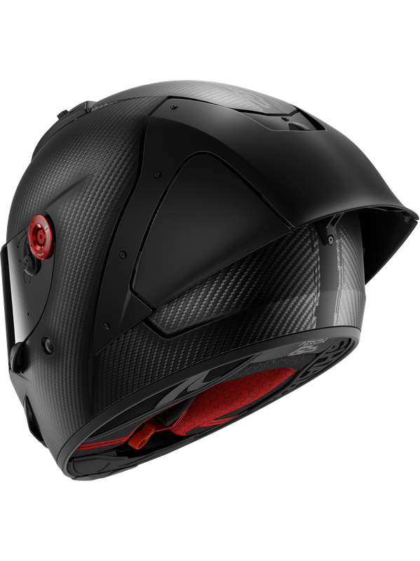 The Aeron GP Full Carbon from Shark is the first helmet worldwide to adapts its shape to the driver's position. Its unsurpassed aerodynamic performance and anti-pressure technology in the neck area ensure an extraordinary driving experience. The A2S technology (adaptive aero system) dampens turbulence on a straight route and lowers the aerodynamic resistance in the curve. The patented aerodynamic spoiler design adapts to the body shape of each driver, since the movable flaps take into account the width of the body shape. Since the helmet brakes the driver less, the aerodynamic air resistance can be reduced by 5 %, which makes your top speed even higher.
