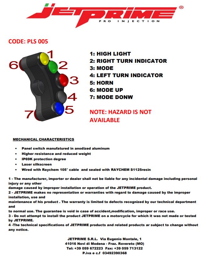 Why Jetprime? Jetprime is known for precisely manufactured and durable products in the field of racing accessories. With this handlebar switch you will receive a high -quality and functional solution that significantly improves the driving behavior and control of your Ducati Panigale 1299/s.