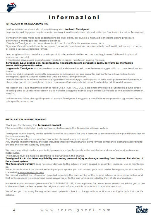 The Termignoni Cat replacement tube for the Ducati Panigale 959 (2016-2019) is a perfect solution to the performance to increase your motorcycle and the Exhaust to optimize. With stainless steel As a material, it is durable and robust, ideal for everyone who wants to get the best out of your Ducati.