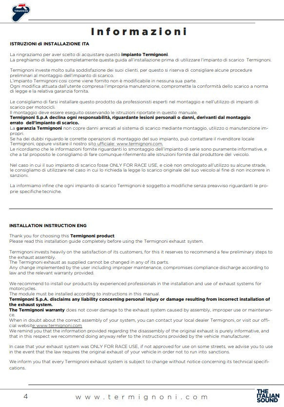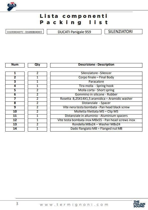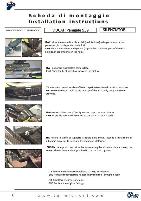 • Type: Slip-on exhaust kit for Ducati Panigale 959 (2016-2019) - developed for maximum performance and Optimized throttle acceptance.