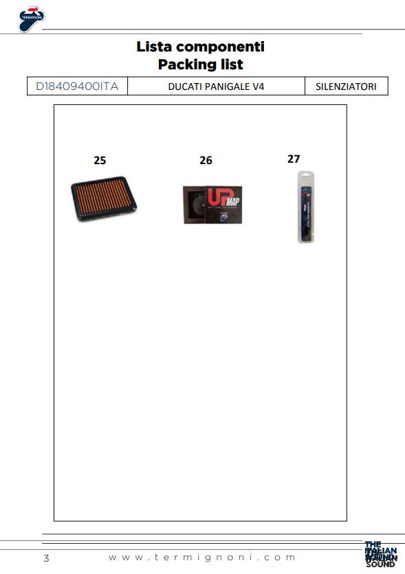 The kit contains All necessary parts and Fastening materialsthat the Assembly of the exhaust system are required. Important: The originals catalyst (Cat) The panigale cannot be used further, which means that a corresponding one Exhaust catalyst substitute is required. The UP-MAP device with Up map card is also included in the scope of delivery to performance and Gas assumption to optimize. The kit is Only for racing approved and therefore not suitable for road operations.