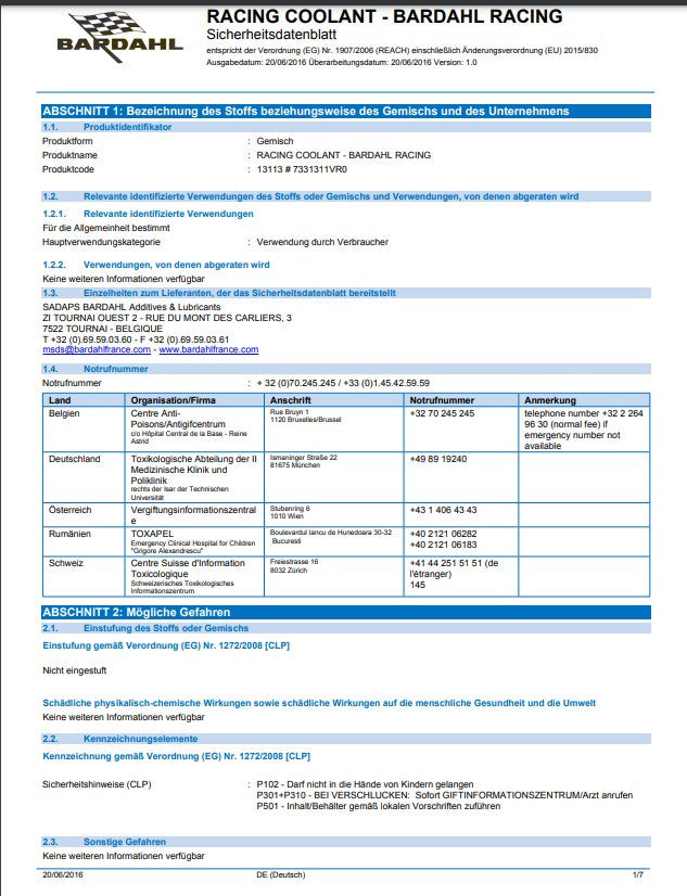 El Refrigerante Bardahl Racing es adecuado para todos los vehículos de carreras donde no se requiere protección de heladas. Ideal para su uso a altas temperaturas y bajo cargas intensivas.