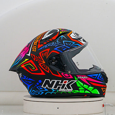 Experimente el mejor casco de motocicleta con la carrera tecnológica NHK GP-R, que es FIM y una carcasa compuesta compuesta de fibra de vidrio avanzada (AFRC) (AFRC) en cinco tamaños que garantizan un ajuste y protección perfectos. El AFRC es un material compuesto que consiste en una matriz y fibras de refuerzo. La matriz suele ser un polímero (por ejemplo, resina epoxi), mientras que las fibras de refuerzo están hechas de fibras de vidrio. Con nueve tamaños de concha interno y doce tamaños de casco, siempre encontrará el ajuste ideal. Nuestro sistema de ventilación 4D-Air garantiza una ventilación óptima y un ajuste cómodo, mientras que el forro interno premium y cómodo ofrece la máxima comodidad. El casco se probó aerodinámicamente en las clases de MotoGP y tiene una visera plana con "vista de gran angular" para un campo de visión extendido. La visera PIN-Lock y la lista de lágrimas garantiza una visión clara de todas las condiciones. Gracias al sistema de visor mecánico 100% completo, cambiar el visor es fácil y rápido. El revestimiento interno extraíble y lavable asegura un cuidado e higiene fácil. El casco también está preparado para una "bolsa de camello" y se puede transportar fácilmente con gafas. El sistema de retención de anillo de doble D y la mejilla para la aceptación ofrecen seguridad y estabilidad adicionales. El casco se probó en el túnel de viento para garantizar el mejor rendimiento a alta velocidad.