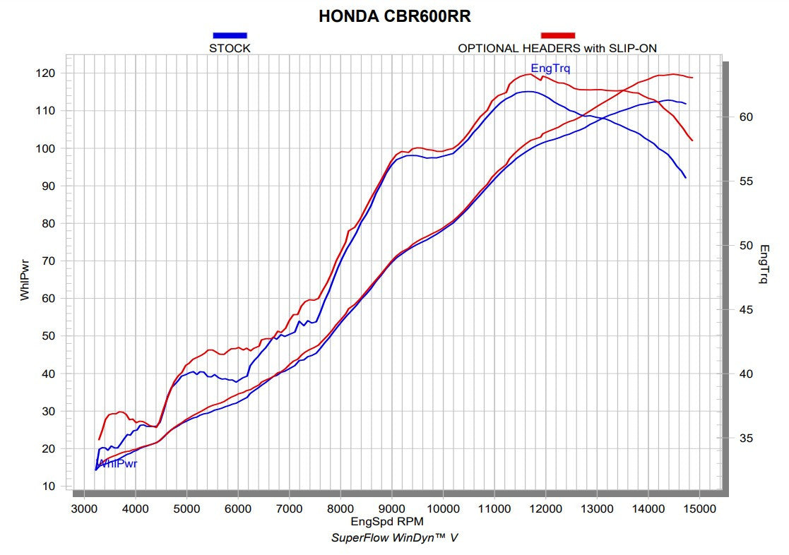 🔹 Aumento delle prestazioni: +7,1 PS (serie: 112,8 PS → Akrapovic: 119,7 CV a 14.000 giri / min)