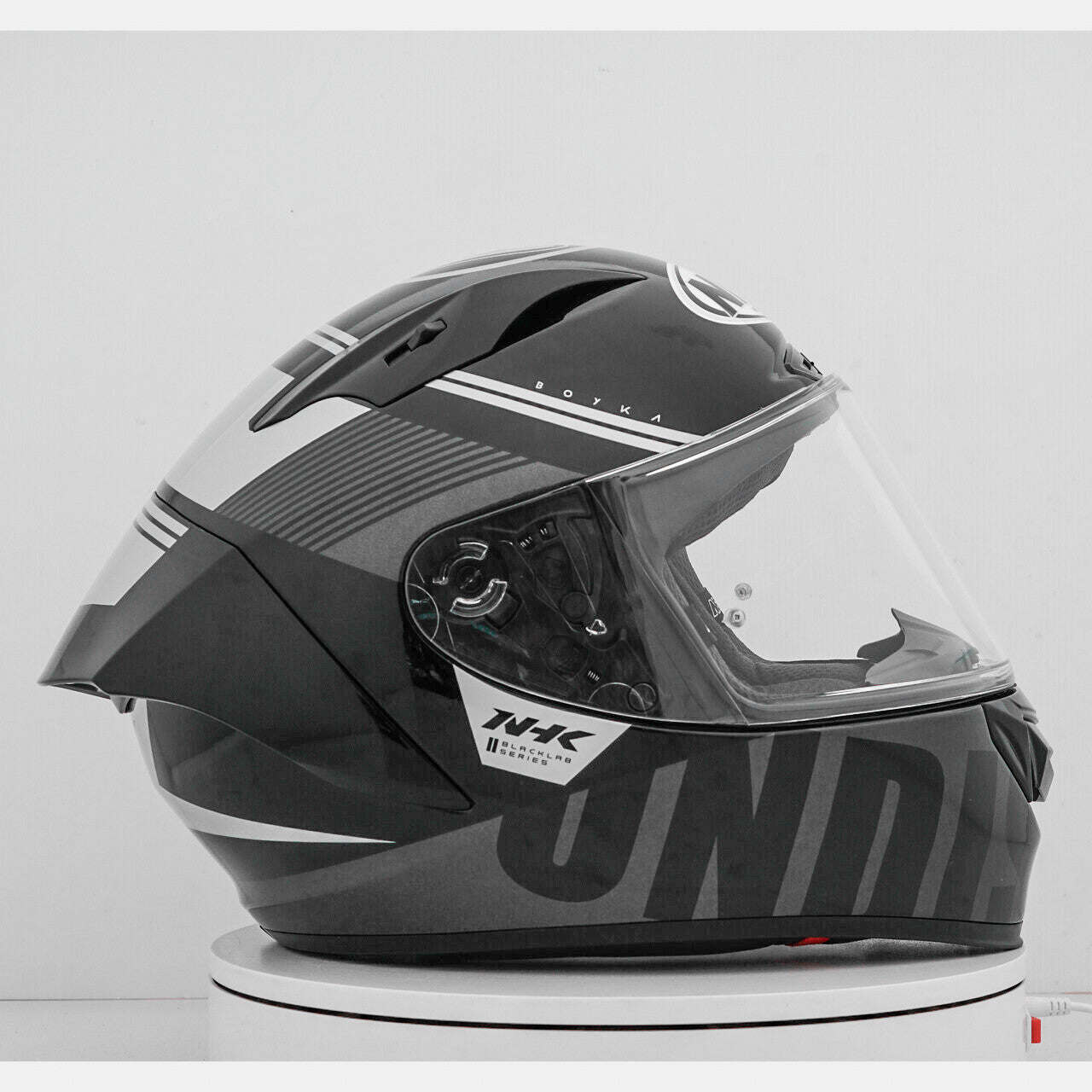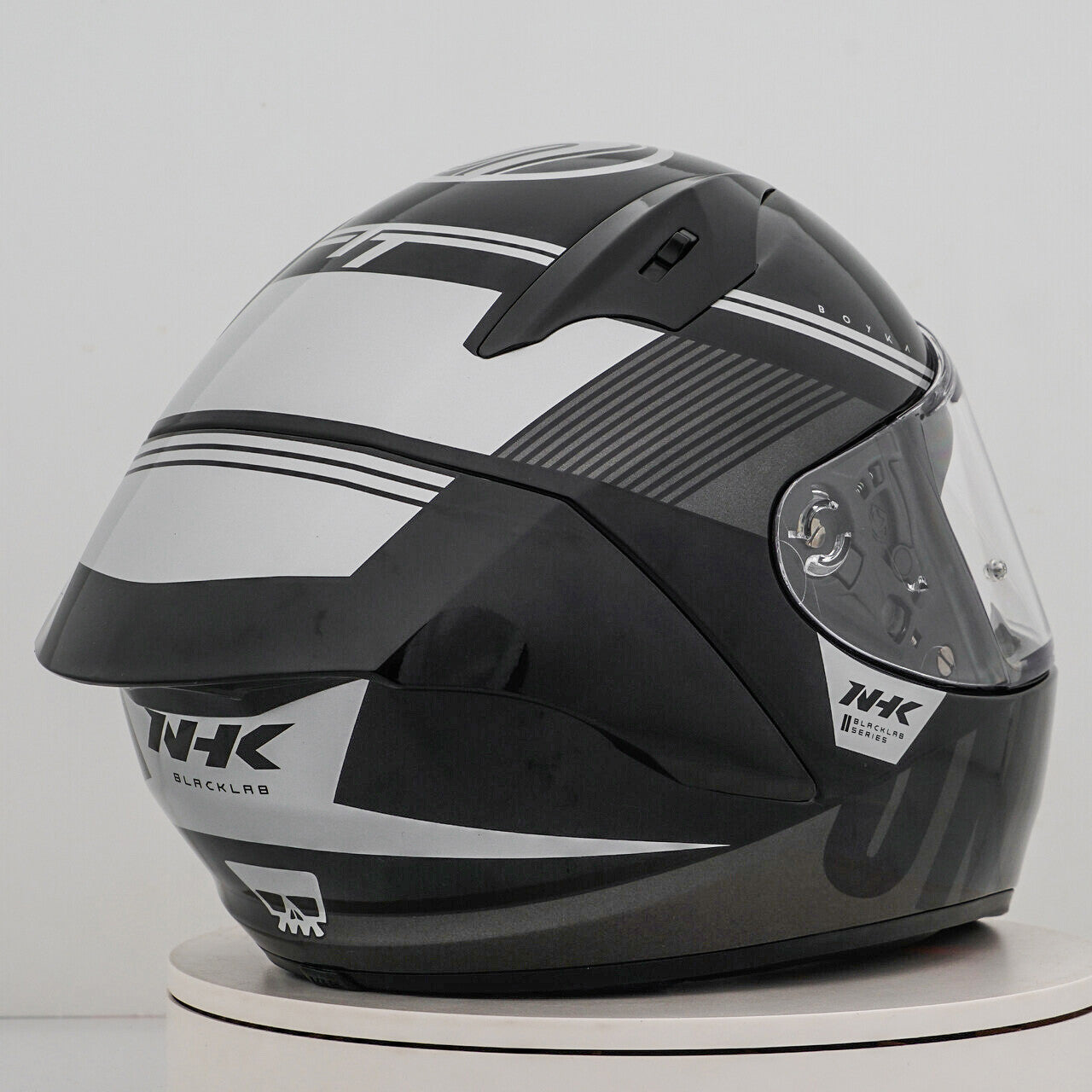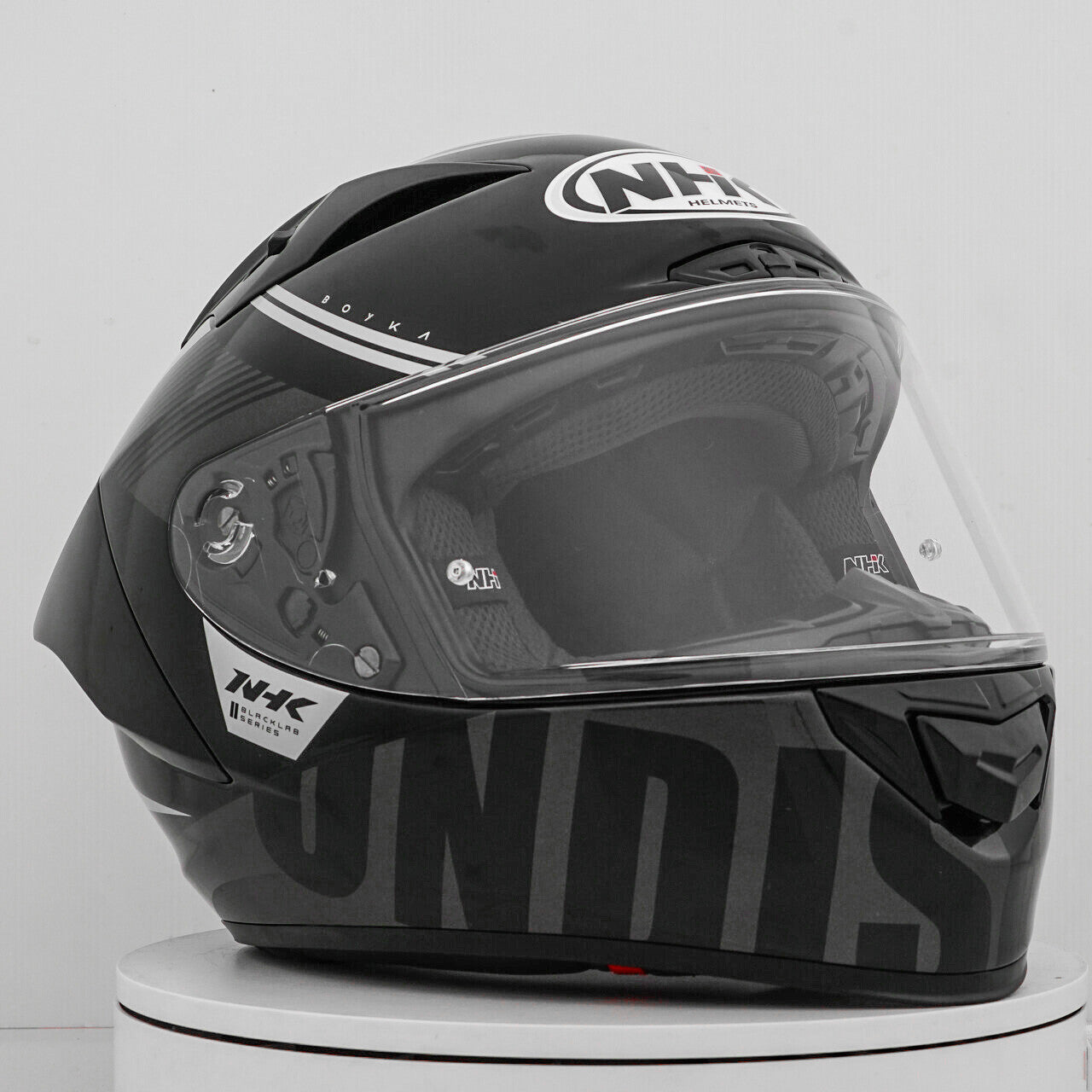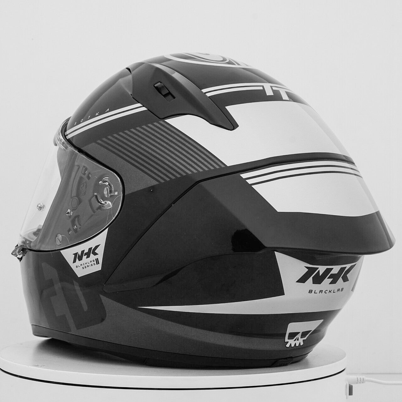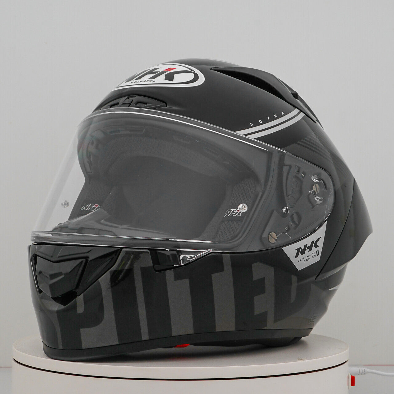 Sperimenta il casco per motociclisti per eccellenza con la NHK GP-R Tech Race, che è FIM e un (AFRC) (AFRC) avanzato guscio composito composito in fibra di vetro in cinque dimensioni che garantisce una perfetta vestibilità e protezione. L'AFRC è un materiale composito che consiste in una matrice e fibre di rinforzo. La matrice è di solito un polimero (ad esempio resina epossidica), mentre le fibre di rinforzo sono realizzate con fibre di vetro. Con nove dimensioni di guscio interne e dodici dimensioni del casco, troverai sempre la vestibilità ideale. Il nostro sistema di ventilazione a 4D aire garantisce una ventilazione ottimale e una vestibilità confortevole, mentre il rivestimento interno premium e confortevole offre il massimo comfort. Il casco è stato testato aerodinamicamente nelle classi MOTOGP e ha una visiera piatta con "vista angolare" per un campo visivo esteso. La visiera pronta per il blocco e la lacrima garantisce una visione chiara da tutte le condizioni. Grazie al sistema di visiera meccanica completa al 100%, cambiare la visiera è facile e veloce. Il rivestimento interno rimovibile e lavabile garantisce una facile cura e igiene. Il casco è anche preparato per una "borsa per cammello" e può essere facilmente trasportato con occhiali. Il sistema di ritenzione a doppia D Ring e la guancia per l'accettazione offrono ulteriore sicurezza e stabilità. Il casco è stato testato nella galleria del vento per garantire le migliori prestazioni ad alta velocità.