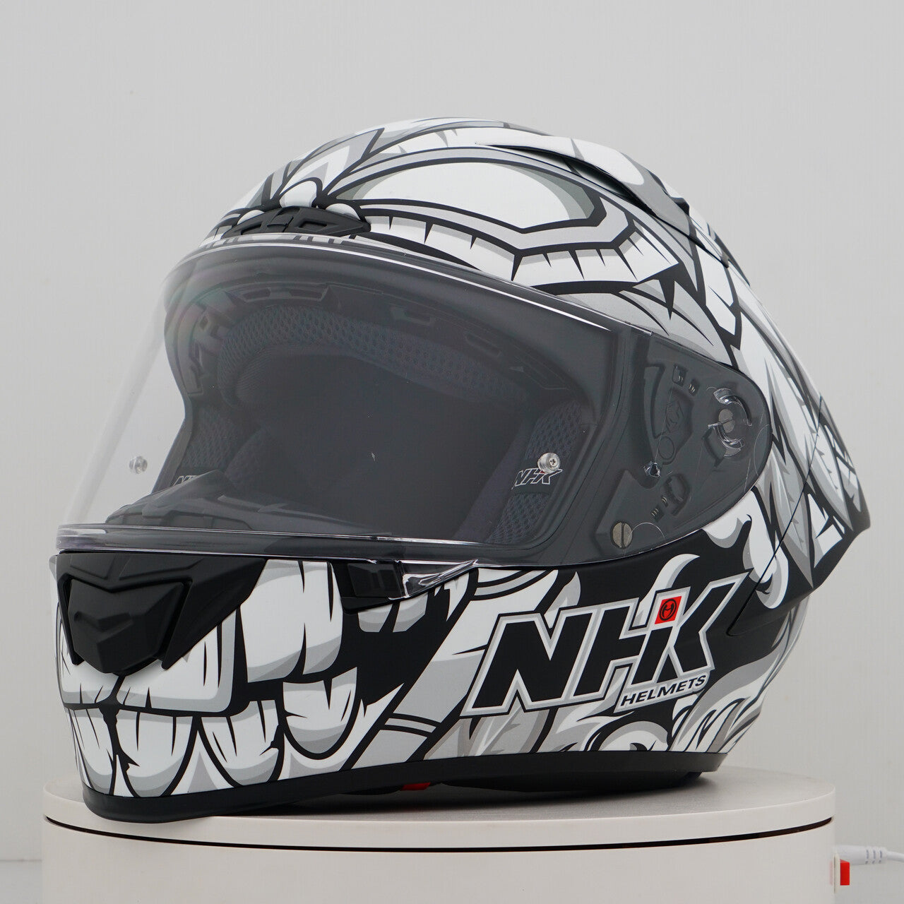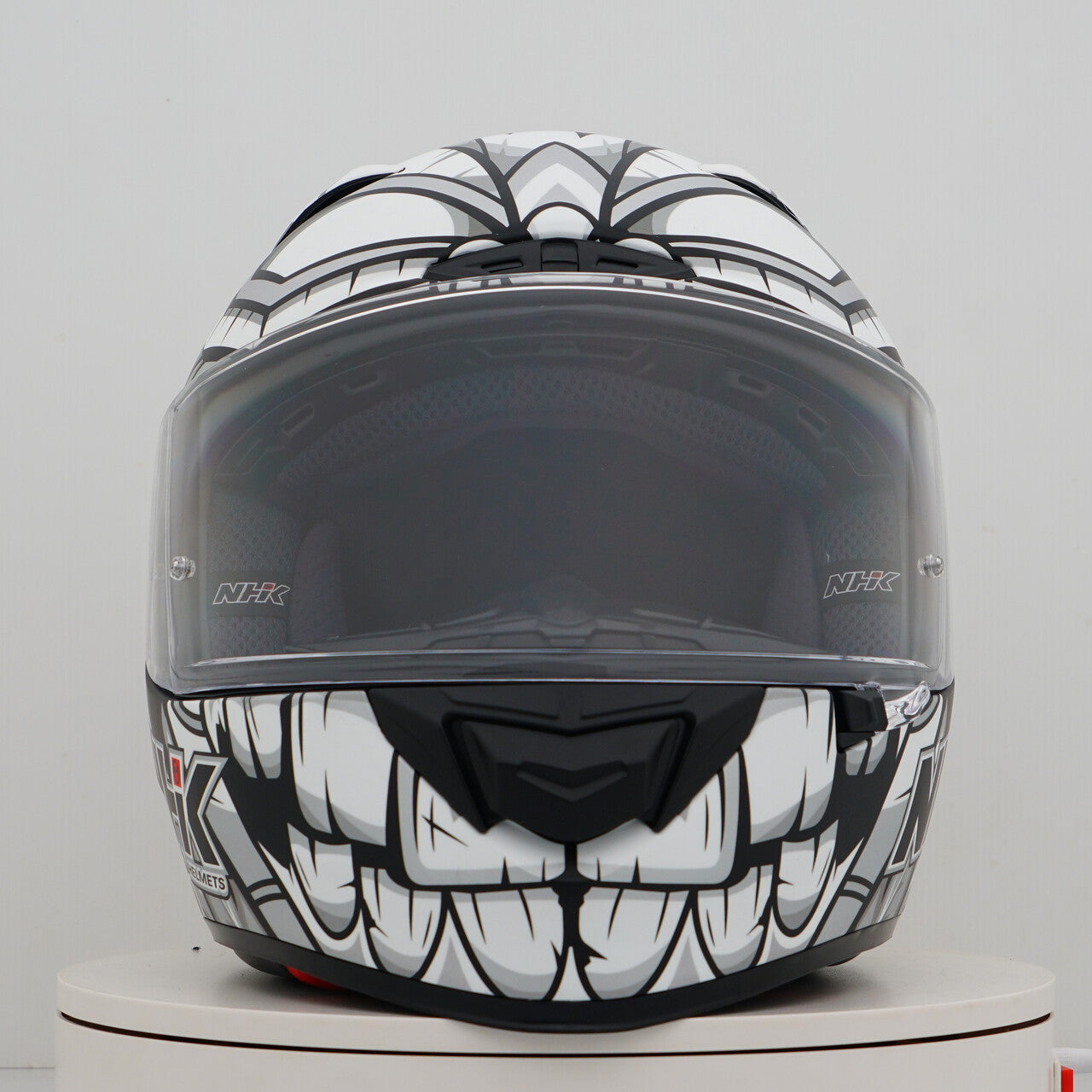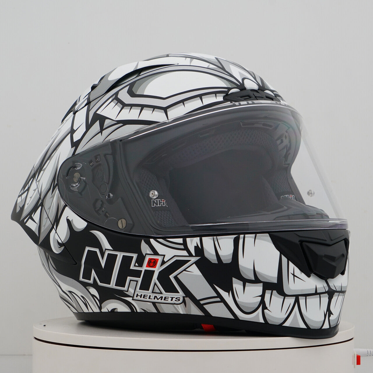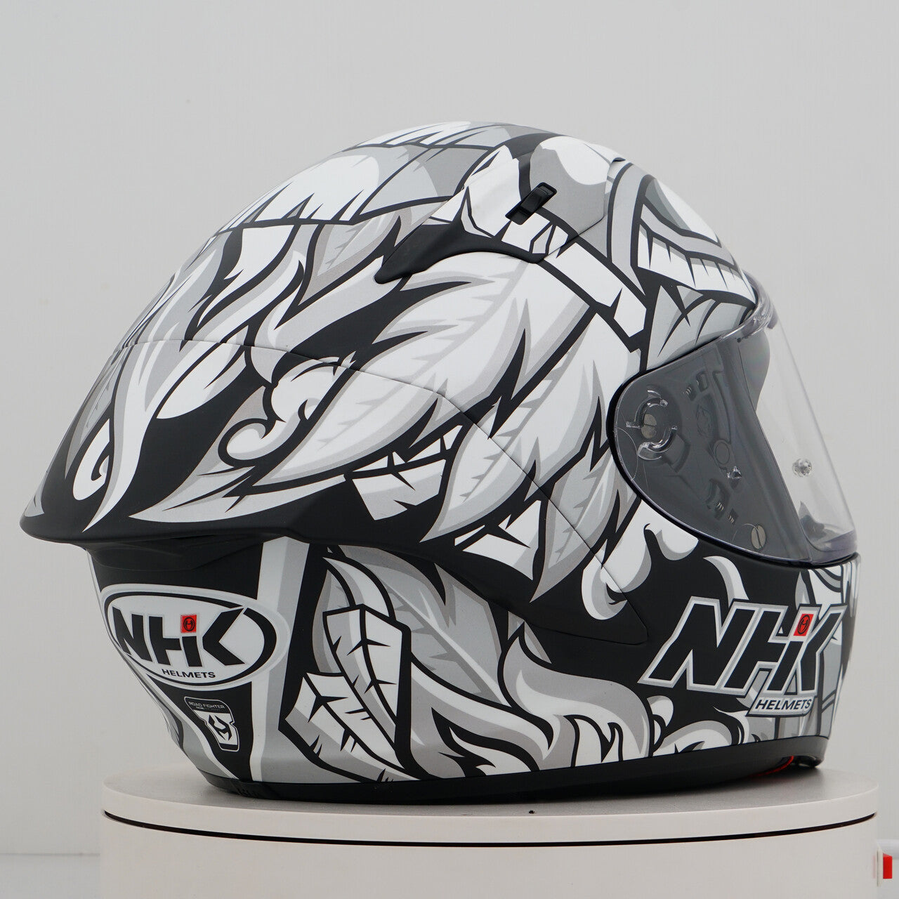 Sperimenta il casco per motociclisti per eccellenza con la NHK GP-R Tech Race, che è FIM e un (AFRC) (AFRC) avanzato guscio composito composito in fibra di vetro in cinque dimensioni che garantisce una perfetta vestibilità e protezione. L'AFRC è un materiale composito che consiste in una matrice e fibre di rinforzo. La matrice è di solito un polimero (ad esempio resina epossidica), mentre le fibre di rinforzo sono realizzate con fibre di vetro. Con nove dimensioni di guscio interne e dodici dimensioni del casco, troverai sempre la vestibilità ideale. Il nostro sistema di ventilazione a 4D aire garantisce una ventilazione ottimale e una vestibilità confortevole, mentre il rivestimento interno premium e confortevole offre il massimo comfort. Il casco è stato testato aerodinamicamente nelle classi MOTOGP e ha una visiera piatta con "vista angolare" per un campo visivo esteso. La visiera pronta per il blocco e la lacrima garantisce una visione chiara da tutte le condizioni. Grazie al sistema di visiera meccanica completa al 100%, cambiare la visiera è facile e veloce. Il rivestimento interno rimovibile e lavabile garantisce una facile cura e igiene. Il casco è anche preparato per una "borsa per cammello" e può essere facilmente trasportato con occhiali. Il sistema di ritenzione a doppia D Ring e la guancia per l'accettazione offrono ulteriore sicurezza e stabilità. Il casco è stato testato nella galleria del vento per garantire le migliori prestazioni ad alta velocità.