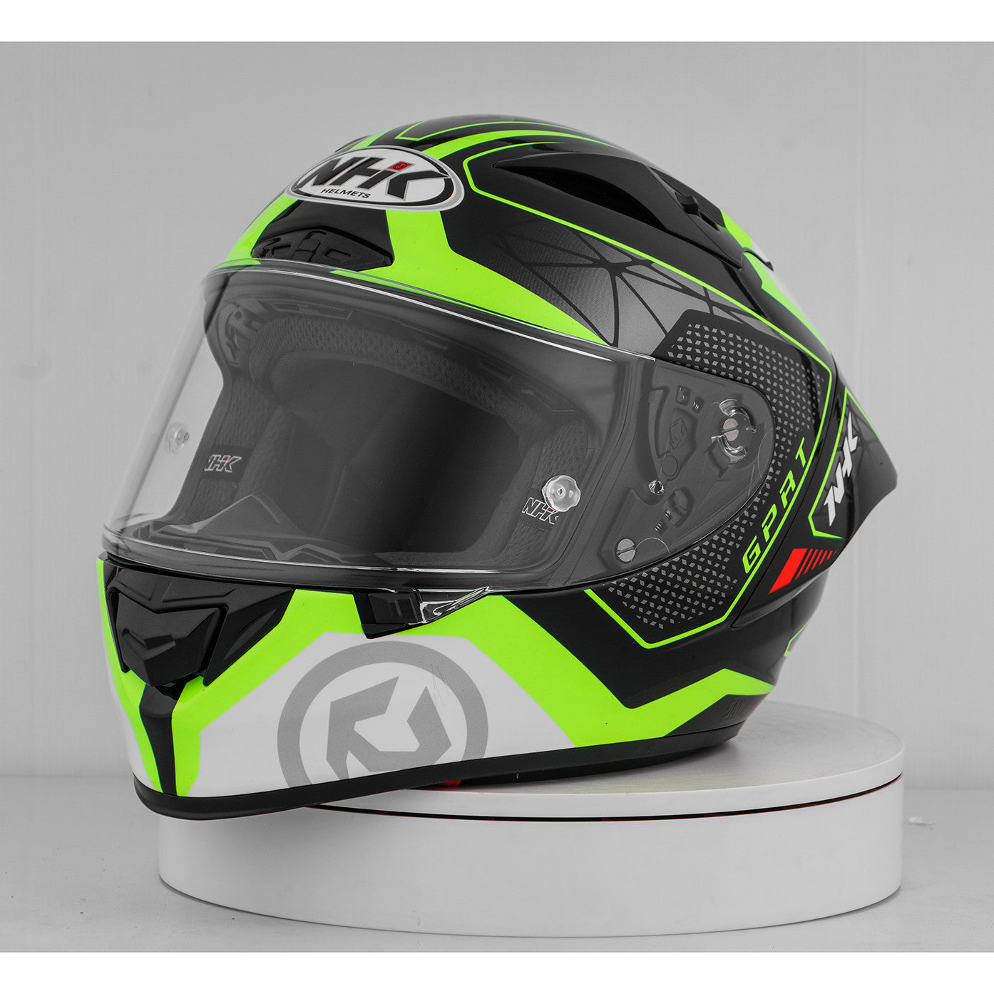 Sperimenta il casco per motociclisti per eccellenza con la NHK GP-R Tech Race, che è FIM e un composito composito armato in fibra di vetro (AFRC) in fibra di vetro in cinque dimensioni che garantisce una perfetta vestibilità e protezione. L'AFRC è un materiale composito che consiste in una matrice e fibre di rinforzo. La matrice è di solito un polimero (ad esempio resina epossidica), mentre le fibre di rinforzo sono realizzate con fibre di vetro. Con nove dimensioni di guscio interne e dodici dimensioni del casco, troverai sempre la vestibilità ideale. Il nostro sistema di ventilazione a 4D aire garantisce una ventilazione ottimale e una vestibilità confortevole, mentre il rivestimento interno premium e confortevole offre il massimo comfort. Il casco è stato testato aerodinamicamente nelle classi del MotoGP e ha una visiera piatta con "vista angolare" per un campo visivo esteso. La visiera pronta per il blocco e la lacrima garantisce una visione chiara da tutte le condizioni. Grazie al sistema di visiera meccanica completa al 100%, cambiare la visiera è facile e veloce. Il rivestimento interno rimovibile e lavabile garantisce una facile cura e igiene. Il casco è anche preparato per una "borsa per cammello" e può essere facilmente trasportato con occhiali. Il sistema di ritenzione a doppia D Ring e la guancia per l'accettazione offrono ulteriore sicurezza e stabilità. Il casco è stato testato nella galleria del vento per garantire le migliori prestazioni ad alta velocità.