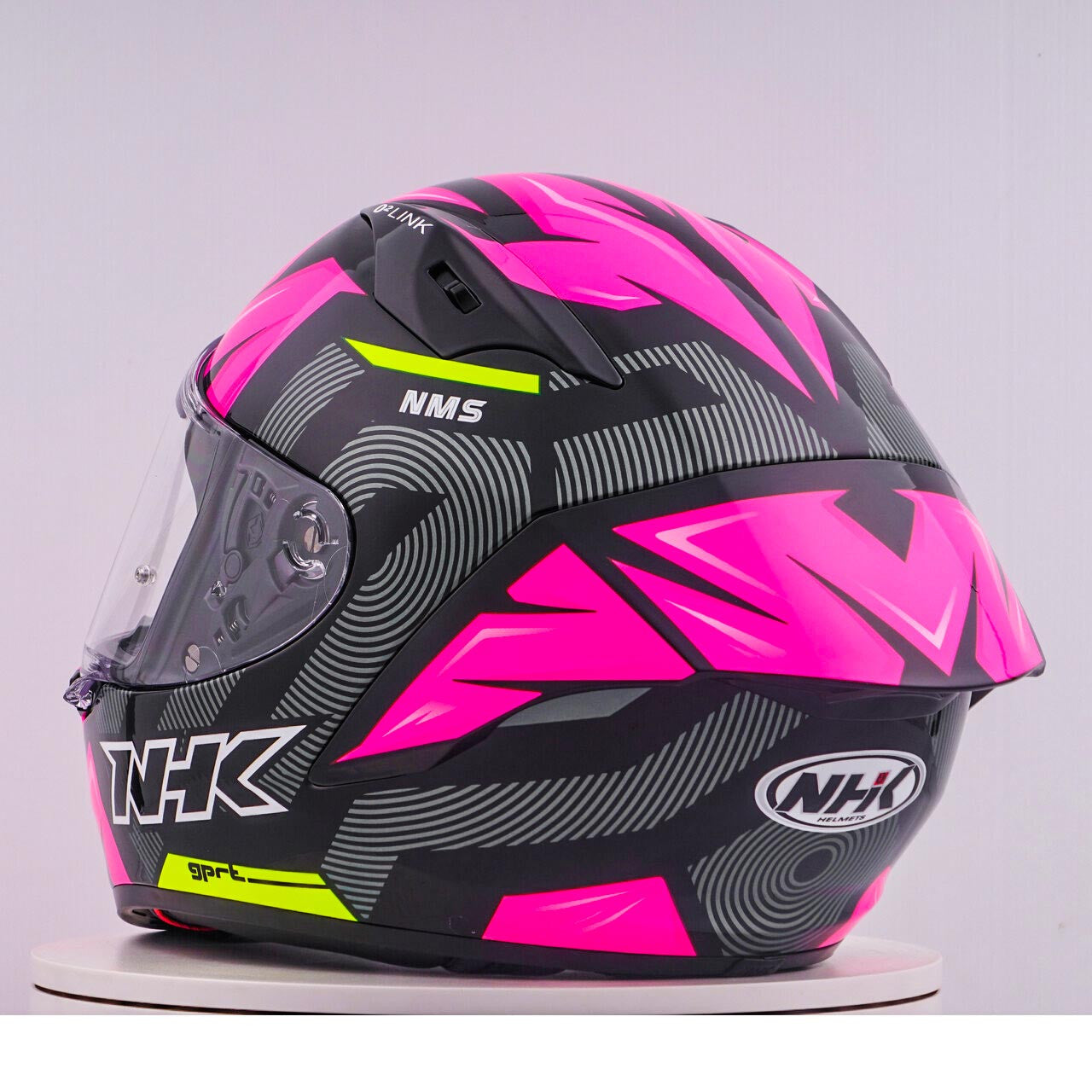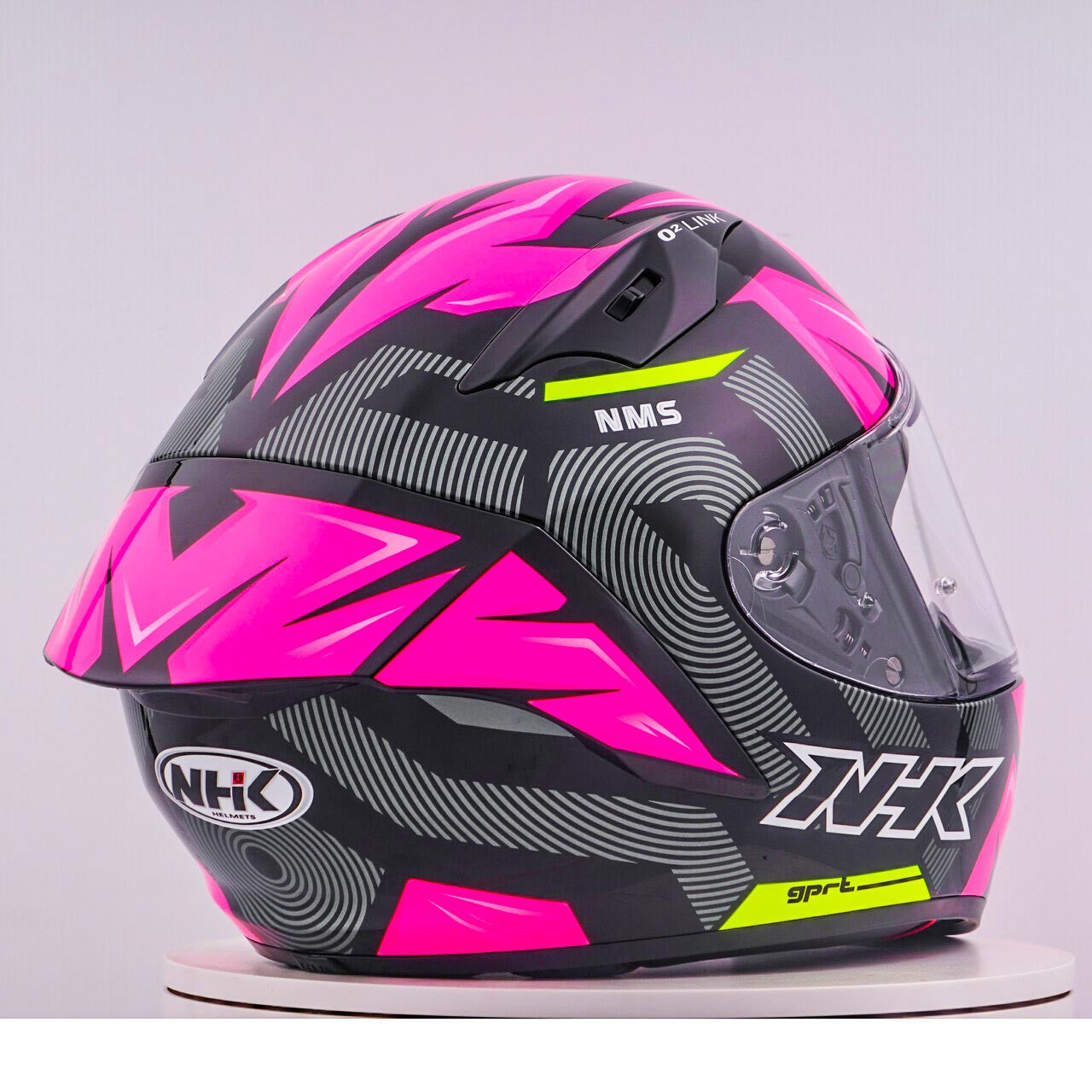 Sperimenta il casco per motociclisti per eccellenza con la NHK GP-R Tech Race, che è FIM e un (AFRC) (AFRC) avanzato guscio composito composito in fibra di vetro in cinque dimensioni che garantisce una perfetta vestibilità e protezione. L'AFRC è un materiale composito che consiste in una matrice e fibre di rinforzo. La matrice è di solito un polimero (ad esempio resina epossidica), mentre le fibre di rinforzo sono realizzate con fibre di vetro. Con nove dimensioni di guscio interne e dodici dimensioni del casco, troverai sempre la vestibilità ideale. Il nostro sistema di ventilazione a 4D aire garantisce una ventilazione ottimale e una vestibilità confortevole, mentre il rivestimento interno premium e confortevole offre il massimo comfort. Il casco è stato testato aerodinamicamente nelle classi MOTOGP e ha una visiera piatta con "vista angolare" per un campo visivo esteso. La visiera pronta per il blocco e la lacrima garantisce una visione chiara da tutte le condizioni. Grazie al sistema di visiera meccanica completa al 100%, cambiare la visiera è facile e veloce. Il rivestimento interno rimovibile e lavabile garantisce una facile cura e igiene. Il casco è anche preparato per una "borsa per cammello" e può essere facilmente trasportato con occhiali. Il sistema di ritenzione a doppia D Ring e la guancia per l'accettazione offrono ulteriore sicurezza e stabilità. Il casco è stato testato nella galleria del vento per garantire le migliori prestazioni ad alta velocità.