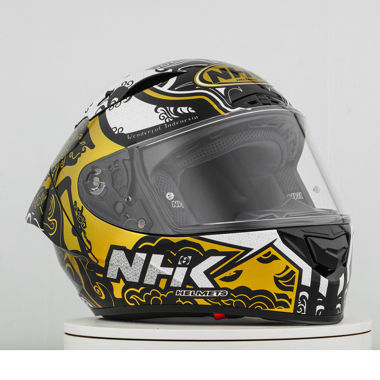 Sperimenta il casco per motociclisti per eccellenza con la NHK GP-R Tech Race, che è FIM e un composito composito armato in fibra di vetro (AFRC) in fibra di vetro in cinque dimensioni che garantisce una perfetta vestibilità e protezione. L'AFRC è un materiale composito che consiste in una matrice e fibre di rinforzo. La matrice è di solito un polimero (ad esempio resina epossidica), mentre le fibre di rinforzo sono realizzate con fibre di vetro. Con nove dimensioni di guscio interne e dodici dimensioni del casco, troverai sempre la vestibilità ideale. Il nostro sistema di ventilazione a 4D aire garantisce una ventilazione ottimale e una vestibilità confortevole, mentre il rivestimento interno premium e confortevole offre il massimo comfort. Il casco è stato testato aerodinamicamente nelle classi MOTOGP e ha una visiera piatta con "vista angolare" per un campo visivo esteso. La visiera pronta per il blocco e la lacrima garantisce una visione chiara da tutte le condizioni. Grazie al sistema di visiera meccanica completa al 100%, cambiare la visiera è facile e veloce. Il rivestimento interno rimovibile e lavabile garantisce una facile cura e igiene. Il casco è anche preparato per una "borsa per cammello" e può essere facilmente trasportato con occhiali. Il sistema di ritenzione a doppia D Ring e la guancia per l'accettazione offrono ulteriore sicurezza e stabilità. Il casco è stato testato nella galleria del vento per garantire le migliori prestazioni ad alta velocità.
