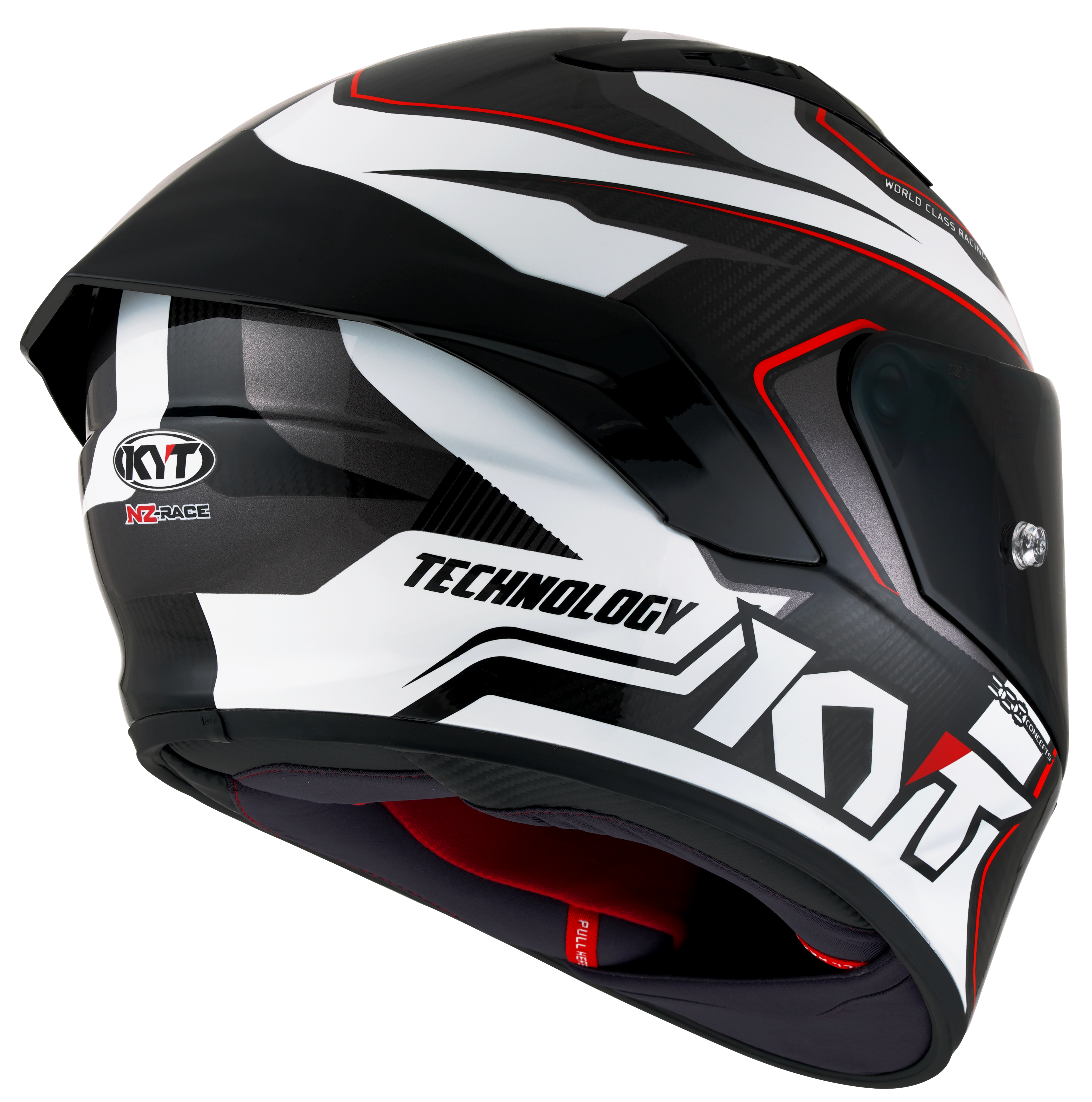 De KYT NZ-RACE HELM CO2 CONCUNTIE Biedt niet alleen aanbiedingen Uitstekende beveiliging, maar ook buitengewoon comfort En ventilatie Voor het eisen van bestuurders die de hoogste prestaties eisen. Met een Tri-vezel composiet shell, de Kevlar®, Koolstof En Glasvezel Gecombineerd is deze helm bijzonder licht en toch extreem robuust.