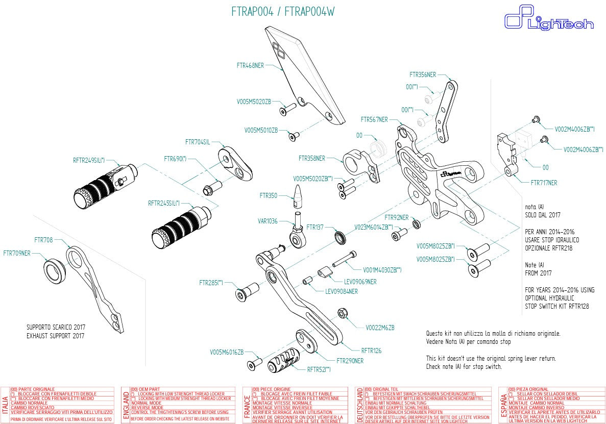 Het Lightech Footstest -systeem voor de Aprilia RSV4 / Factory / RR / RR / RF (Model Years 2009–2016) biedt first -class vakmanschap, precieze ergonomie en absolute flexibiliteit voor elke toepassing - of het nu op straat of racen.