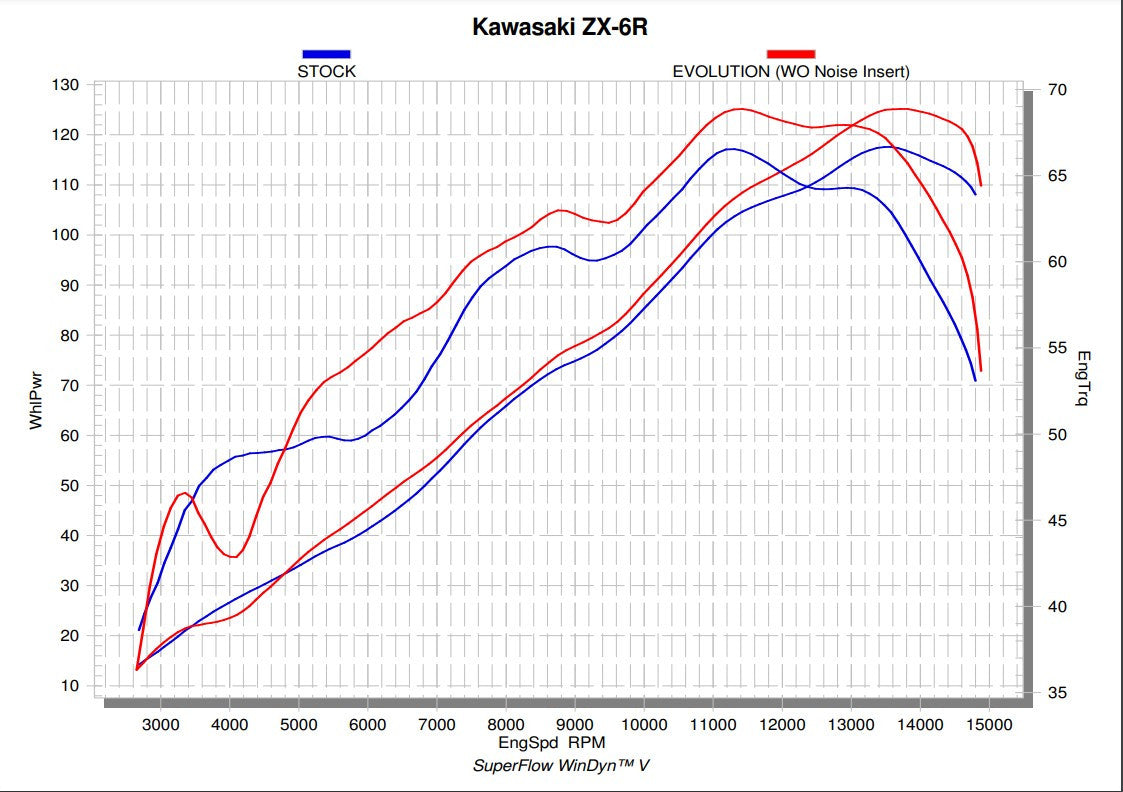 🔹 Augmentation des performances: +9,7 ps (série: 117,6 ps → akrapovic: 125,2 ch à 13 700 tr / min)