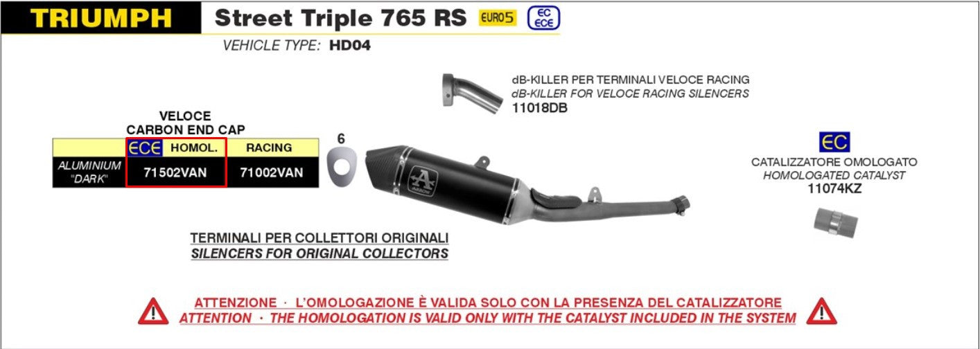 Le Aluminium Veloce à slip-on de flèche pour Triumph Street Triple 765 (Années de construction 2020-2022) est le choix parfait pour les conducteurs qui Performance - Environ et sportif Trouvez du carburant d'échappement. L'échappement est constitué de haute qualité aluminium Et pèse juste 3,41 kgce qui conduit à une amélioration de l'acceptation du gaz et du comportement de conduite dynamique.