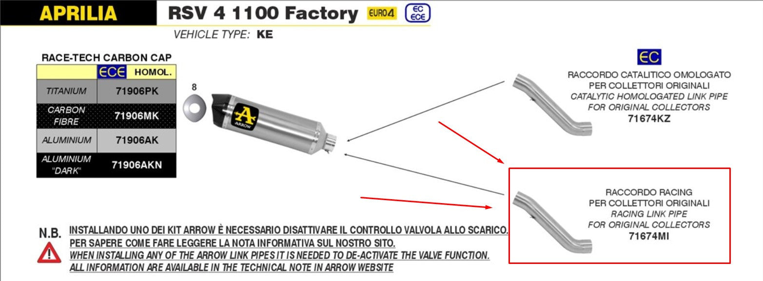 ARROW INTERMEDIAD TUBE ACTEUR INOXDUBLE pour Aprilia RSV4 1100 Usine (19-20) - Article Numéro 71674MI