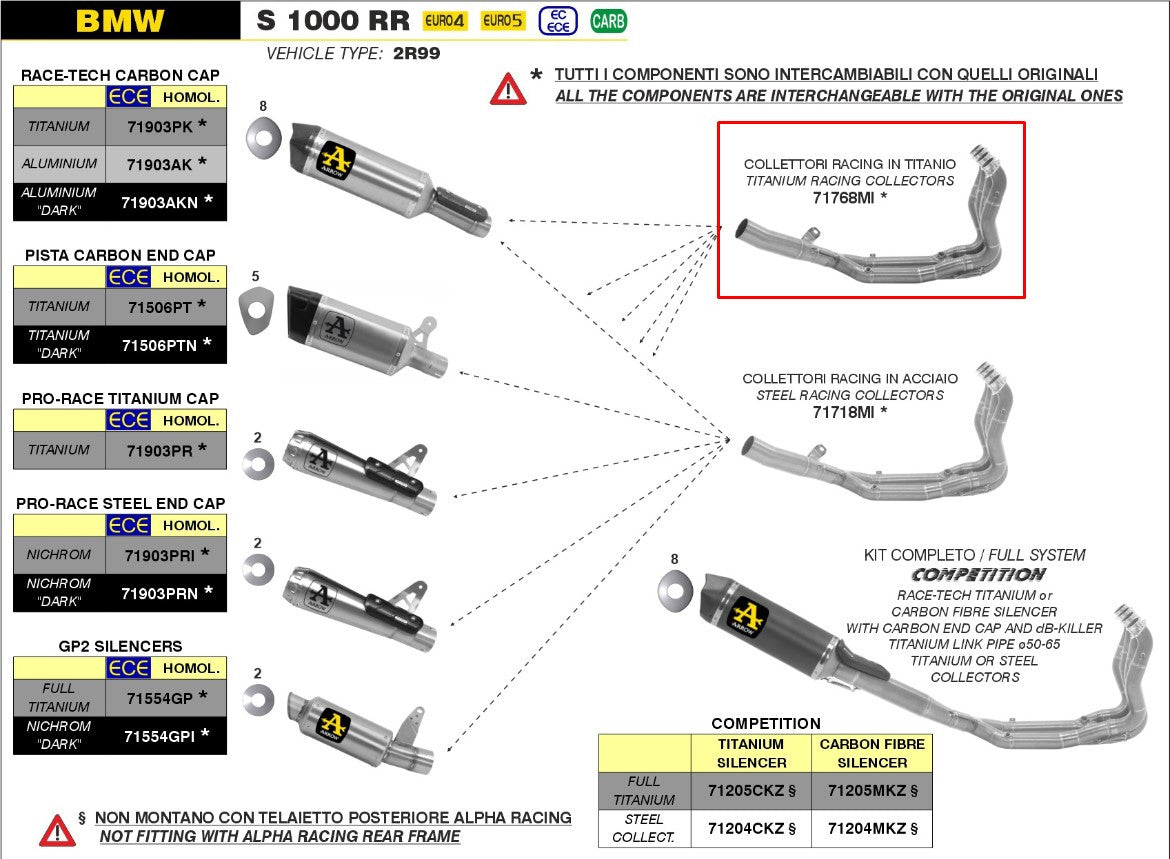Titane de collecteur Arrow pour BMW S1000RR K67 (19-25) - Article Numéro 71768MI