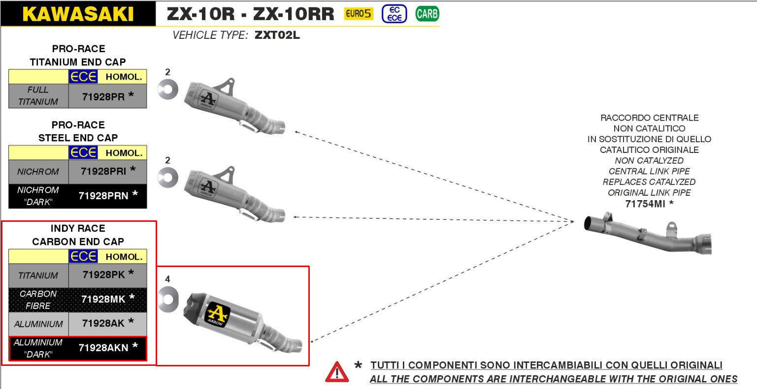 Le Slip-on de la flèche 71928akn était spécifiquement pour le Kawasaki zx-10r / rr (Années de construction 2021-2025) développé et se compose de haute qualité aluminium. Avec ce slip-on, vous en expérimerez un Amélioration des performances, un Acceptation optimisée des gaz Et un notable Augmentation des performances. L'échappement ne pèse que 2,12 kg et c'est avec un Db tueur Équipé pour réguler le volume. De plus, le slip-on en a un Numéro en eCela garantit une utilisation légale dans la circulation routière publique.