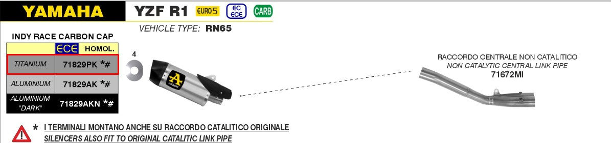Titane Indy-Race Slip-On de Arrow pour Yamaha YZF-R1 / M (17-25)