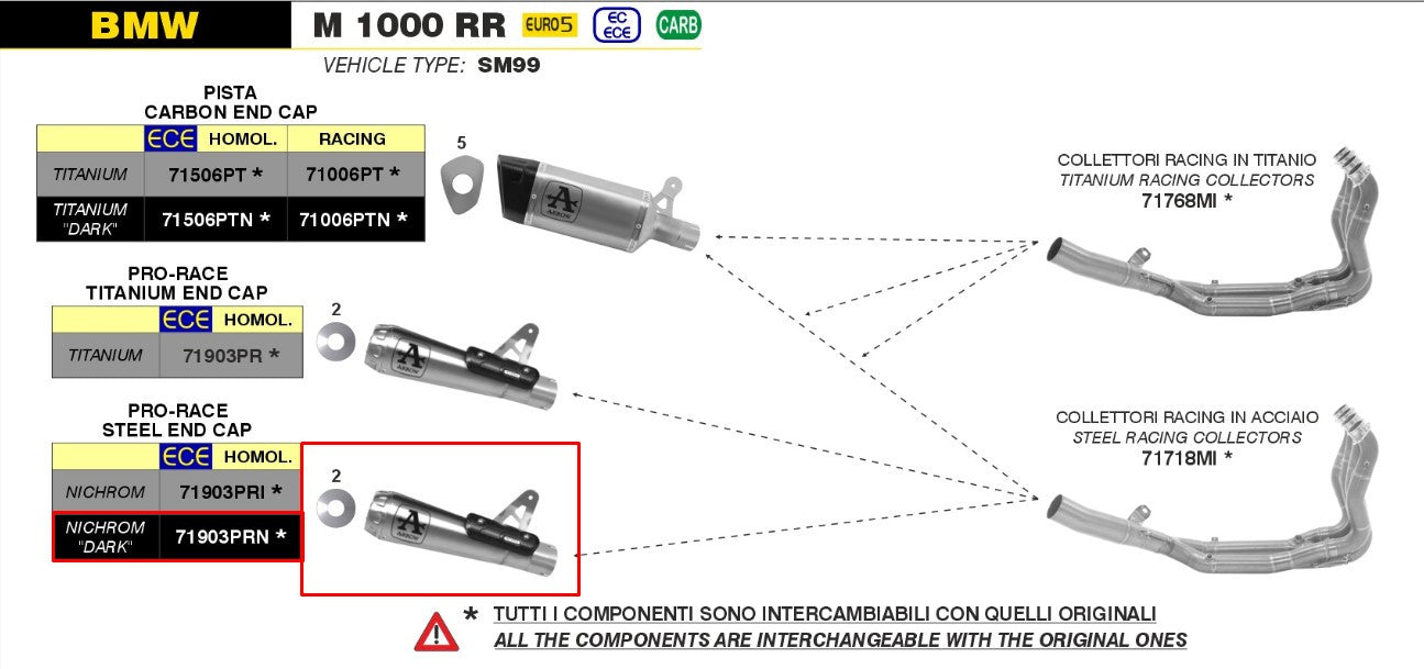 - Remarque sur l'image: Le premier exemple d'image a été photographié car Arrow n'a pas encore fourni d'image de produit officielle pour le M1000RR.