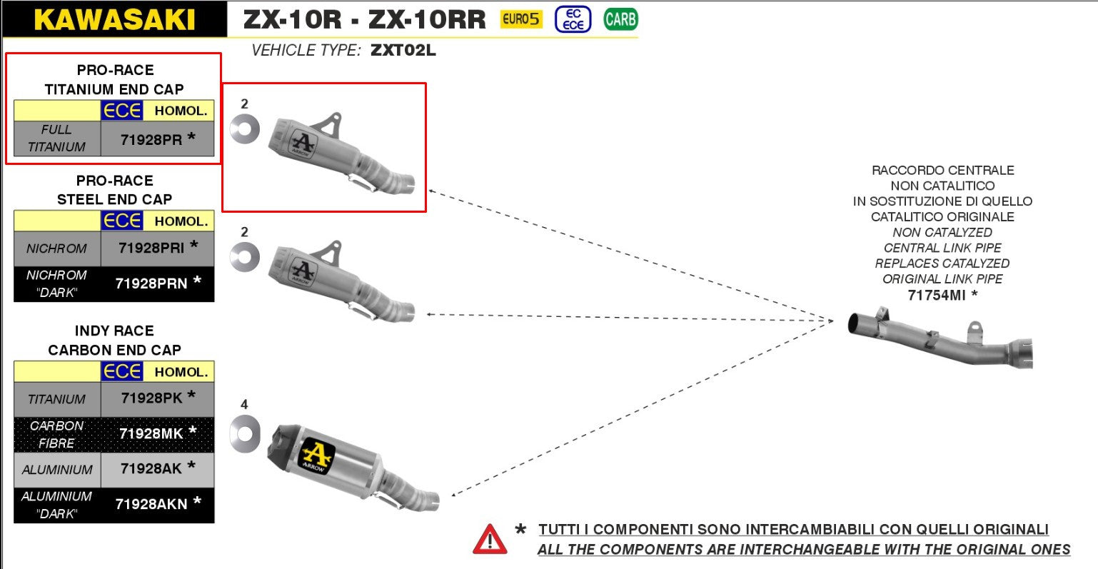 Titane pro-race à slip-on de Arrow pour Kawasaki ZX-10R / RR (21-25) -71928PR