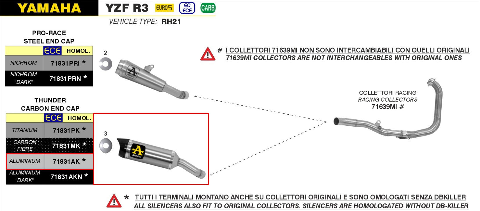 Aluminium Thunder Slip-On de Arrow pour Yamaha YZF-R3 (21-25) -71831AK