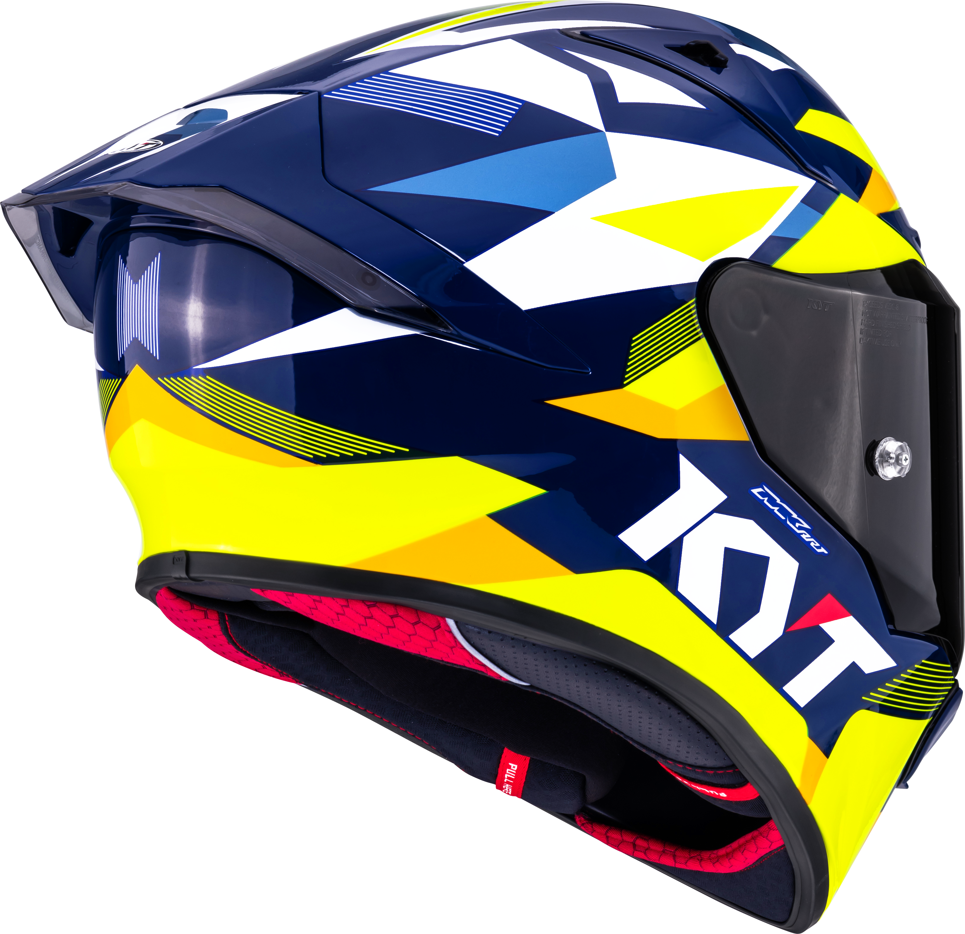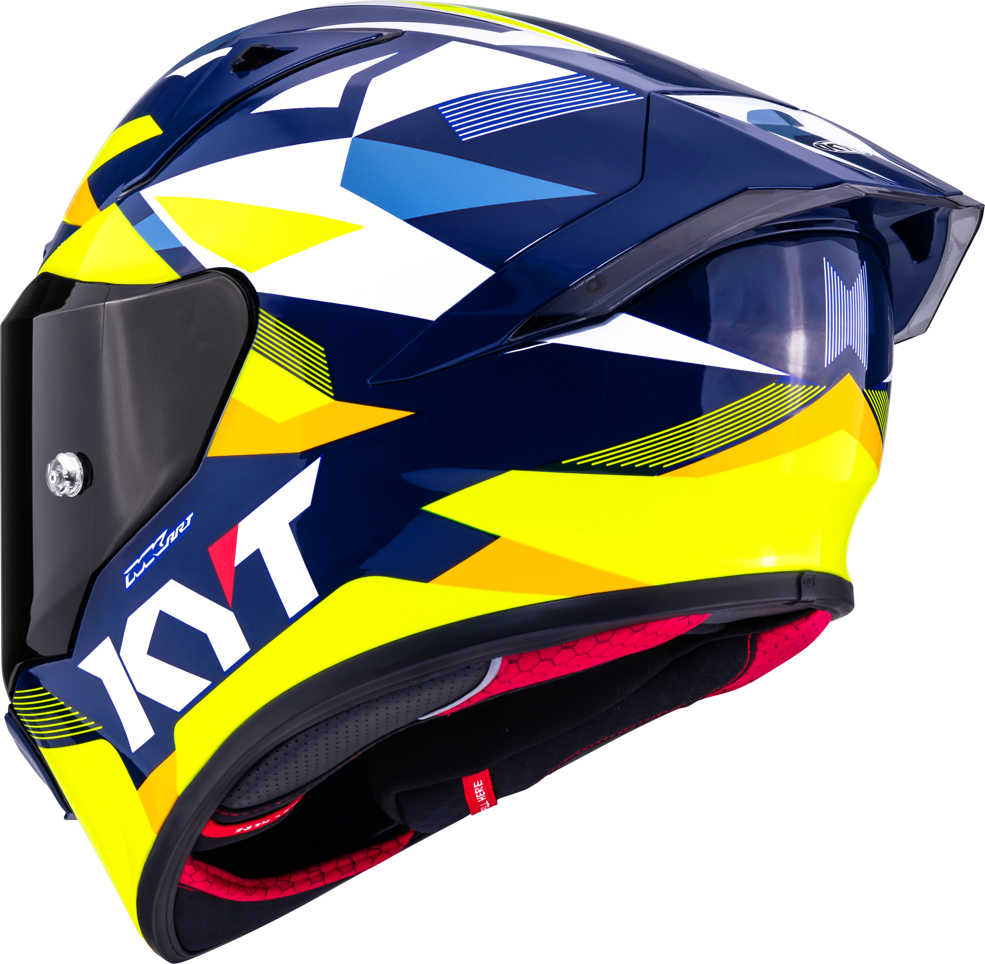 Der KYT R1R Carbon Diamond Blau/Gelb vereint eine spektakuläre Optik im Diamant-Design mit der vollen Performance eines Carbon-Racing-Helms. Die Kombination aus sichtbarer Carbonstruktur und dynamischen Blau-Gelb-Akzenten macht ihn nicht nur technisch beeindruckend, sondern auch optisch zu einem echten Highlight.