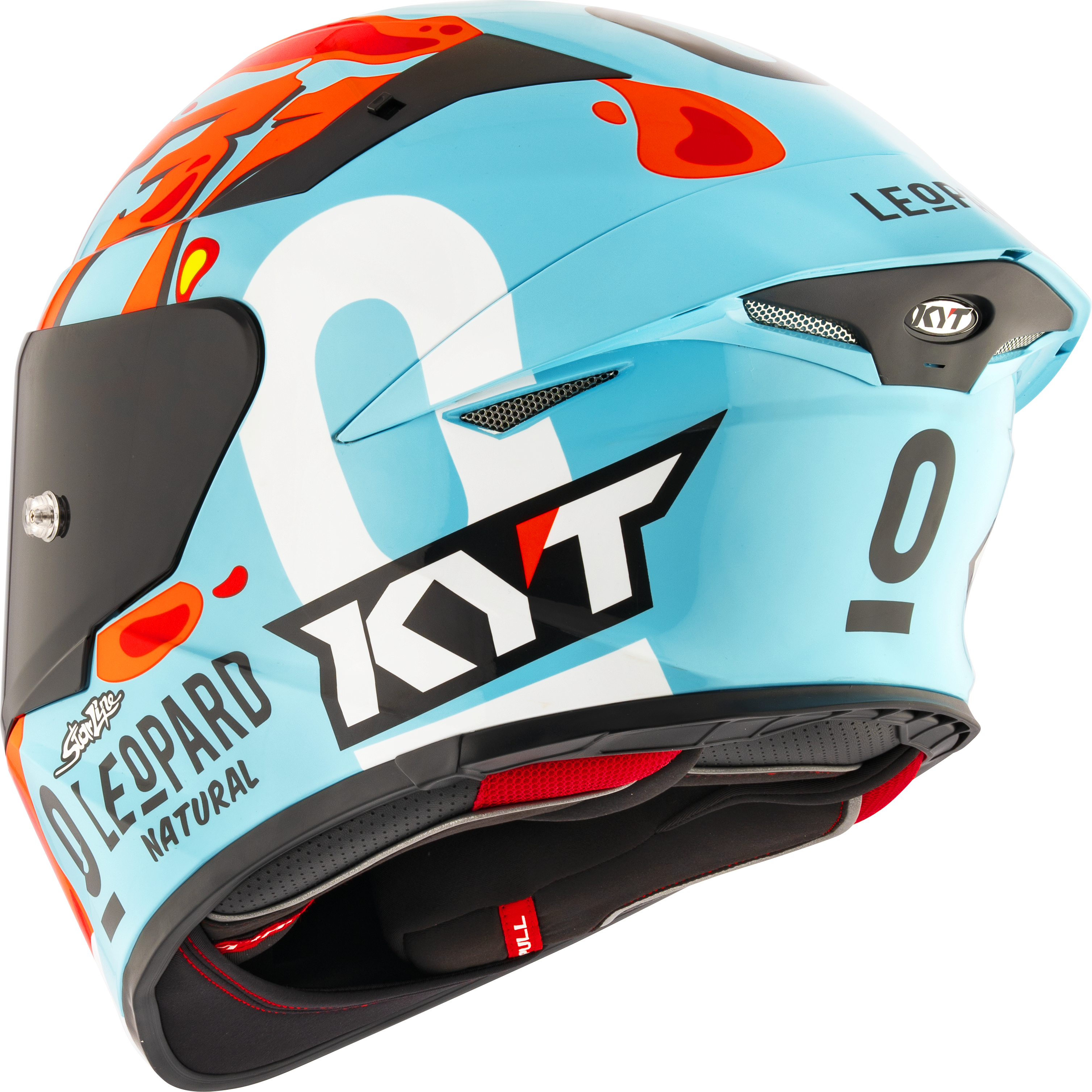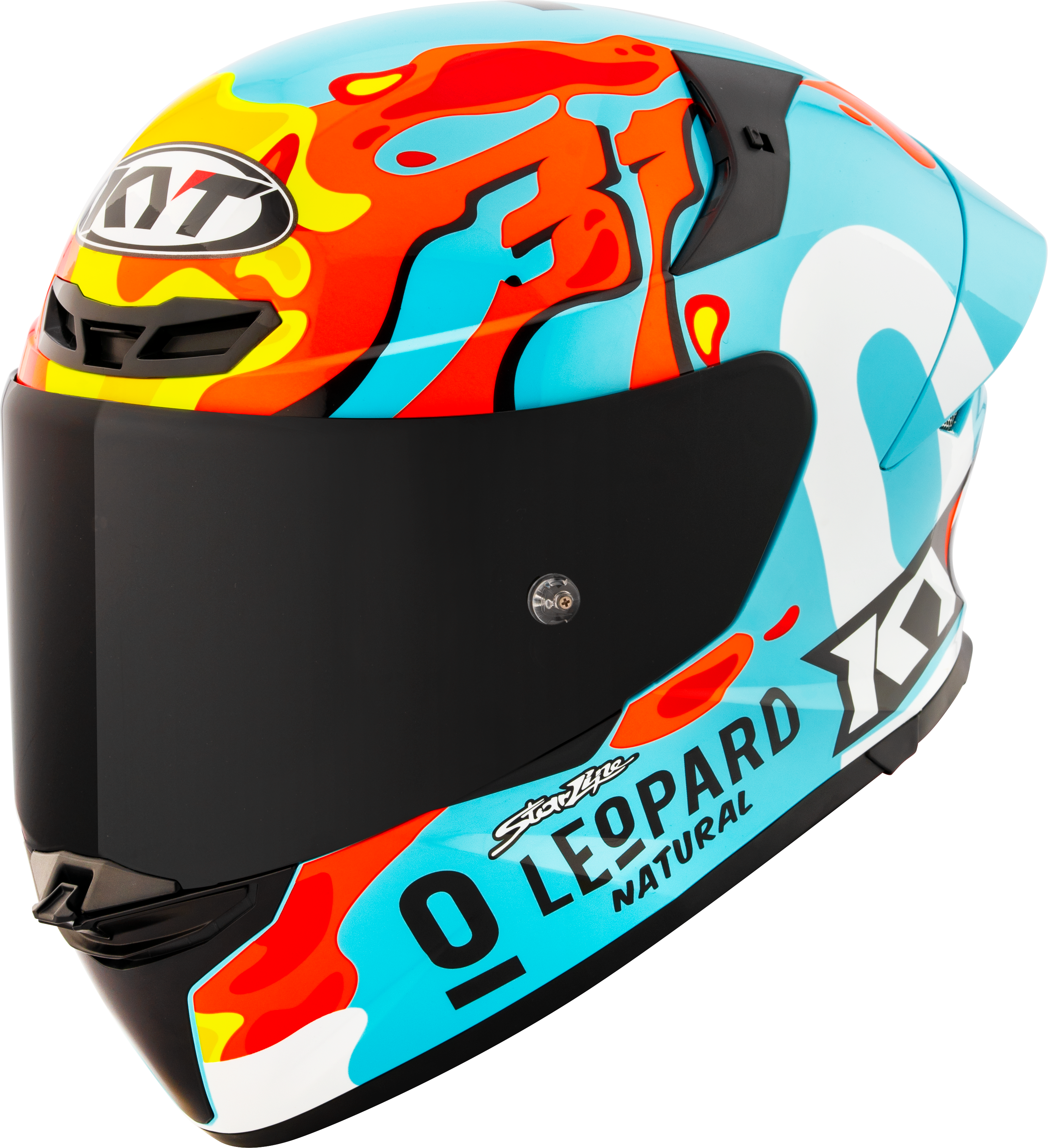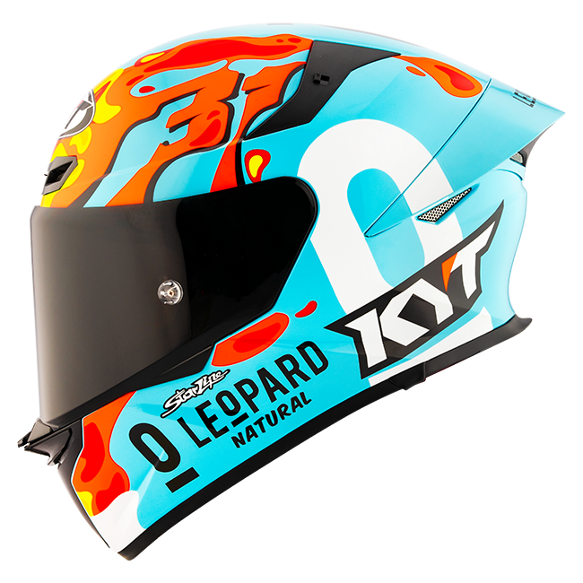 Der KYT TT-Revo Leopard Replica Aragon bringt eine der ikonischsten MotoGP-Grafiken direkt auf deinen Helm. Die bekannte Türkis-Schwarz-Optik des Leopard Racing Teams sorgt für maximale Wiedererkennung – sportlich, modern und absolut rennsporttypisch.