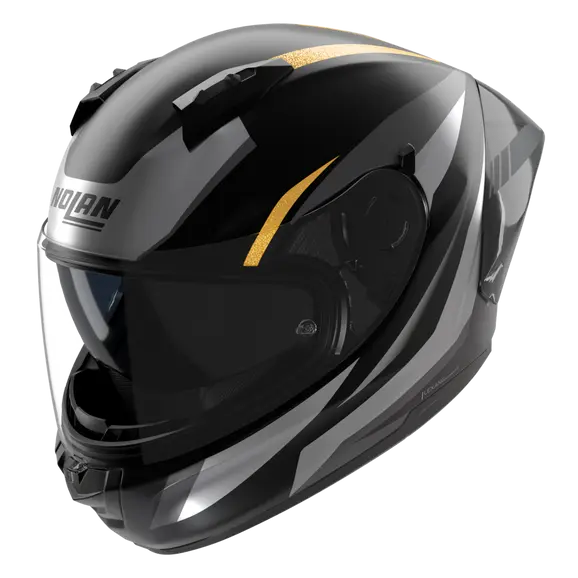 Der Nolan N60-6 Sport Lesmo Schwarz / Grau / Gold – Metall-Finish 354 vereint kompromisslose Sicherheit, exzellente Aerodynamik und ein edles, sportliches Design.