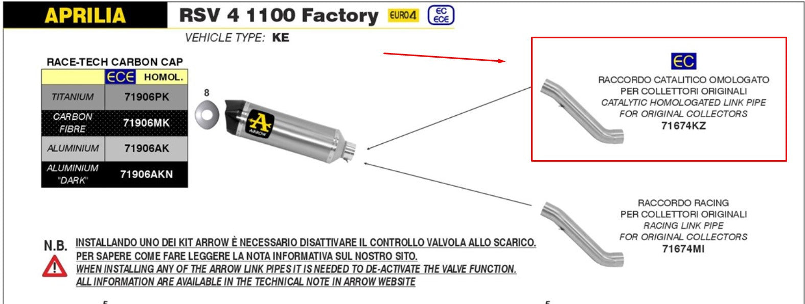 Le tube intermédiaire Arrow 71674Kz a été spécialement développé pour l'usine Aprilia RSV4 1100 (construite en 2019-2020). Il est en acier inoxydable de haute qualité et est équipé d'un catalyseur intégré qui répond à la norme Euro 5. Grâce à l'approbation de la rue avec le numéro E et un poids de seulement 1,25 kg, ce tube intermédiaire est l'ajout idéal à votre machine.
