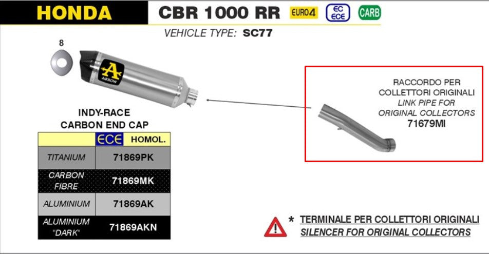 Le Flèche Racing Intermediate Tube 71679MI était spécifiquement pour le Honda CBR 1000 RR SC77 (Building Years 2017-2019) a développé et permet le Utilisation supplémentaire du collecteur d'origine. Comme Slip-on Doit le Série Arrow 71869pk à utiliser pour en faire un puissant Système complet former. Pour un Performance optimale et longévité devient un spécialement développé Reprogrammation de l'unité de commande recommandé.