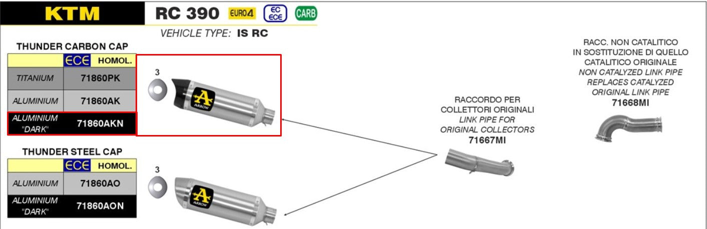 Arrow Slip-On Thunder Aluminium Dark pour KTM RC 390 (17-20) -71860AKN