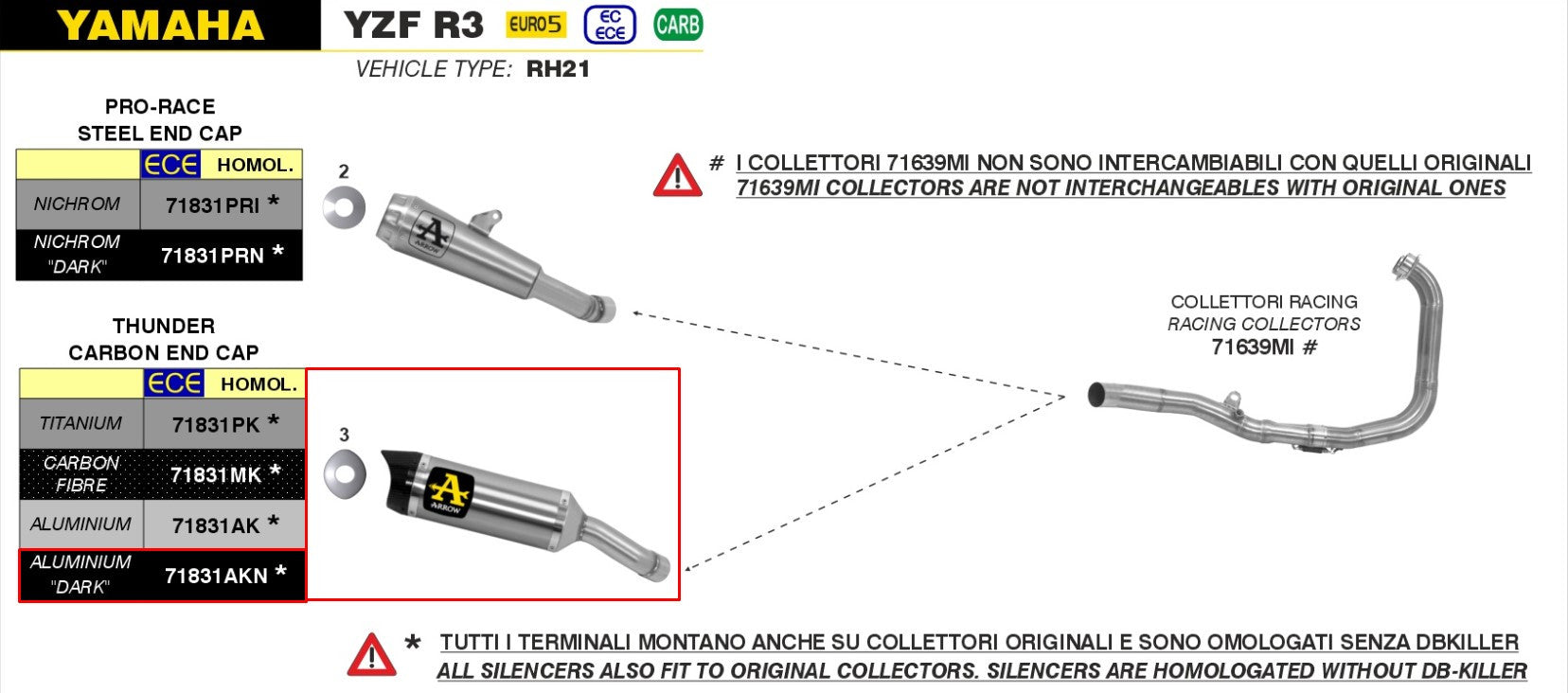 Merci au Numéro en e est le Slip-on pour Opérations routières approuvées, afin que vous puissiez facilement l'utiliser sur le circuit et sur la circulation routière quotidienne. Le Db tueur Assure un contrôle juridique du volume sans affecter la performance. Pour une performance encore meilleure et un comportement de réponse optimisé, nous vous recommandons d'utiliser un Mappages, Cela correspond parfaitement à l'échappement de votre yamaha yzf-r3.