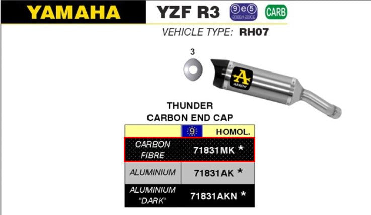 Arrow Slip-On Thunder Carbon pour Yamaha YZF-R3 (15-18) -71831MK