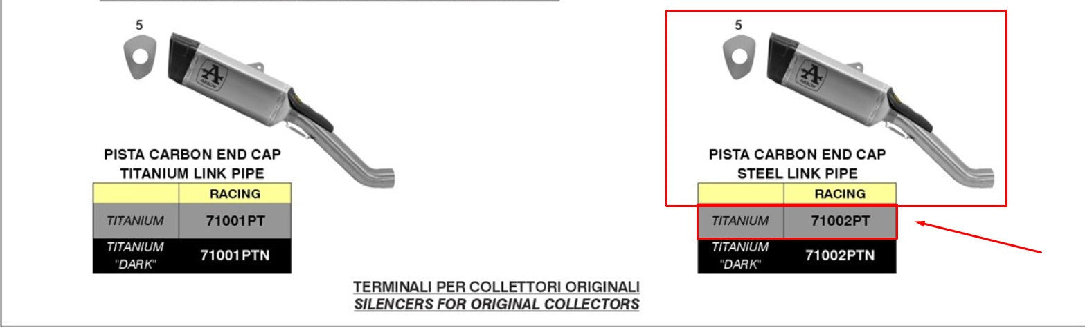 Le Slip-on de la Arrow 71002pt de la série Pista a été spécialement développé pour l'usine Aprilia RSV4 1100 (années de construction 2019-2020). Avec un silencieux final en acier inoxydable de haute qualité, un capuchon d'extrémité en carbone et un poids de seulement 3,30 kg, ce slip-on offre une combinaison parfaite d'un look sportif, une construction légère et des performances de piste de course maximales.