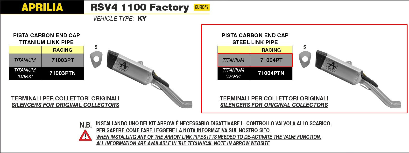 Kit de slip-on de flèche Pista en acier inoxydable pour Aprilia RSV4 1100 Factory (21-25) - Article numéro 71004pt