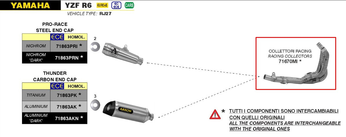 Le Arrow Krümmer 71670mi était spécifiquement pour le Yamaha yzf-r6 rj27 (Building Years 2017-2025) a développé et en assure un Augmentation des performances optimisées Et un amélioré Hypothèse de gaz. Ce Collecteur en acier inoxydable se promener Performance globale à et est pour ça Piste conçu. Pour un Performance optimale et longévité devient un spécialement développé Reprogrammation de l'unité de commande recommandé.